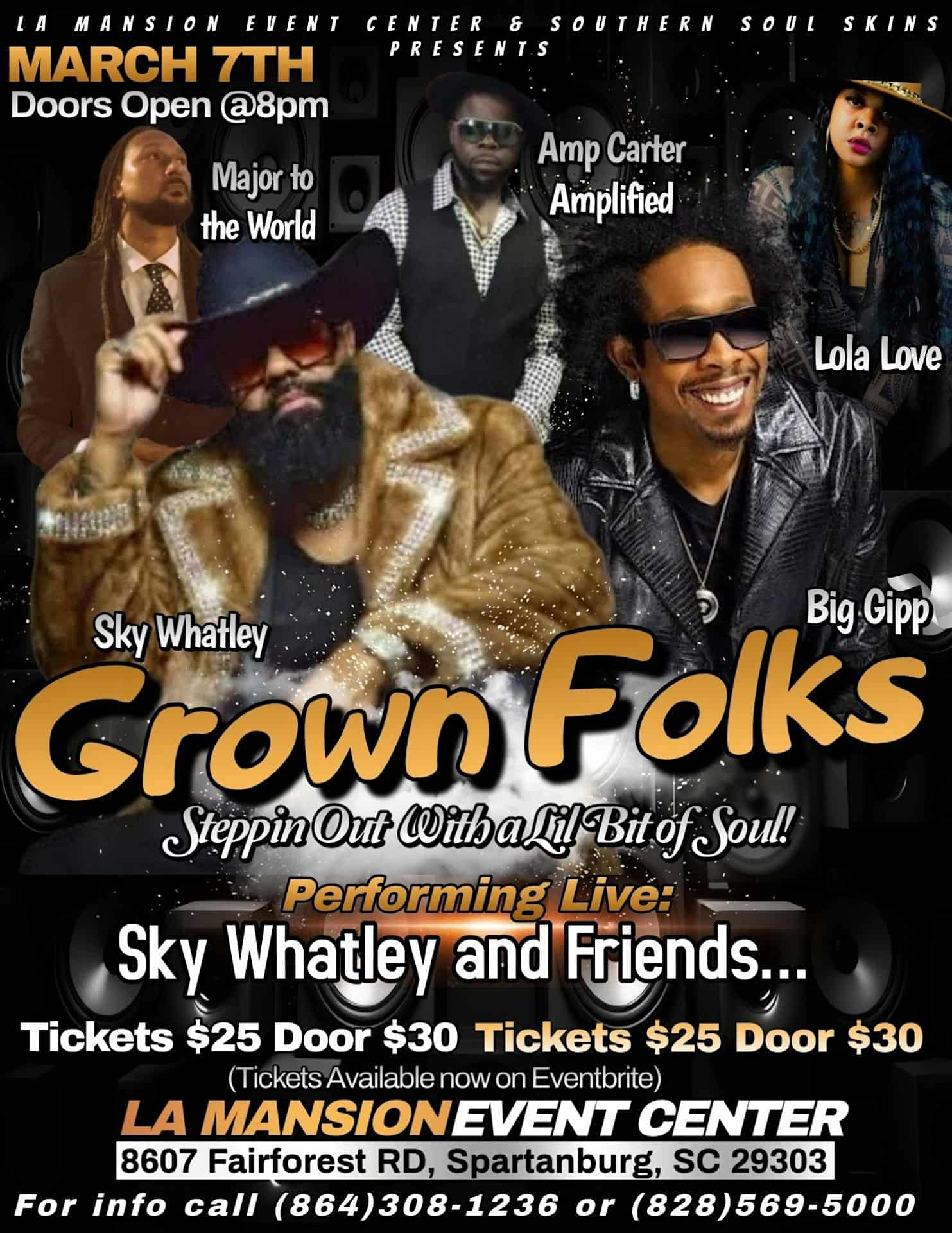 by admin23Feb GROWN FOLKS STEPPING OUT at La Mansion Event Venue – Spartanburg, SC GROWN FOLKS STEPPING OUT at La Mansion Event Venue – Spartanburg, SC 2 2 people viewed this event. GROWN FOLKS STEPPING OUT is the ultimate chill night for grown adults to vibe, connect, and have fun live. Tickets-RSVP Link Date And Time Saturday, March 7th, 2026 @ 10:00 AM Location 8607 Fairforest Road, Spartanburg, SC 29303 Event Types Community & CultureParty or Social Gathering Event Category South Carolina Share With Friends Facebook Twitter Linkedin Xing Pinterest Share This Post: