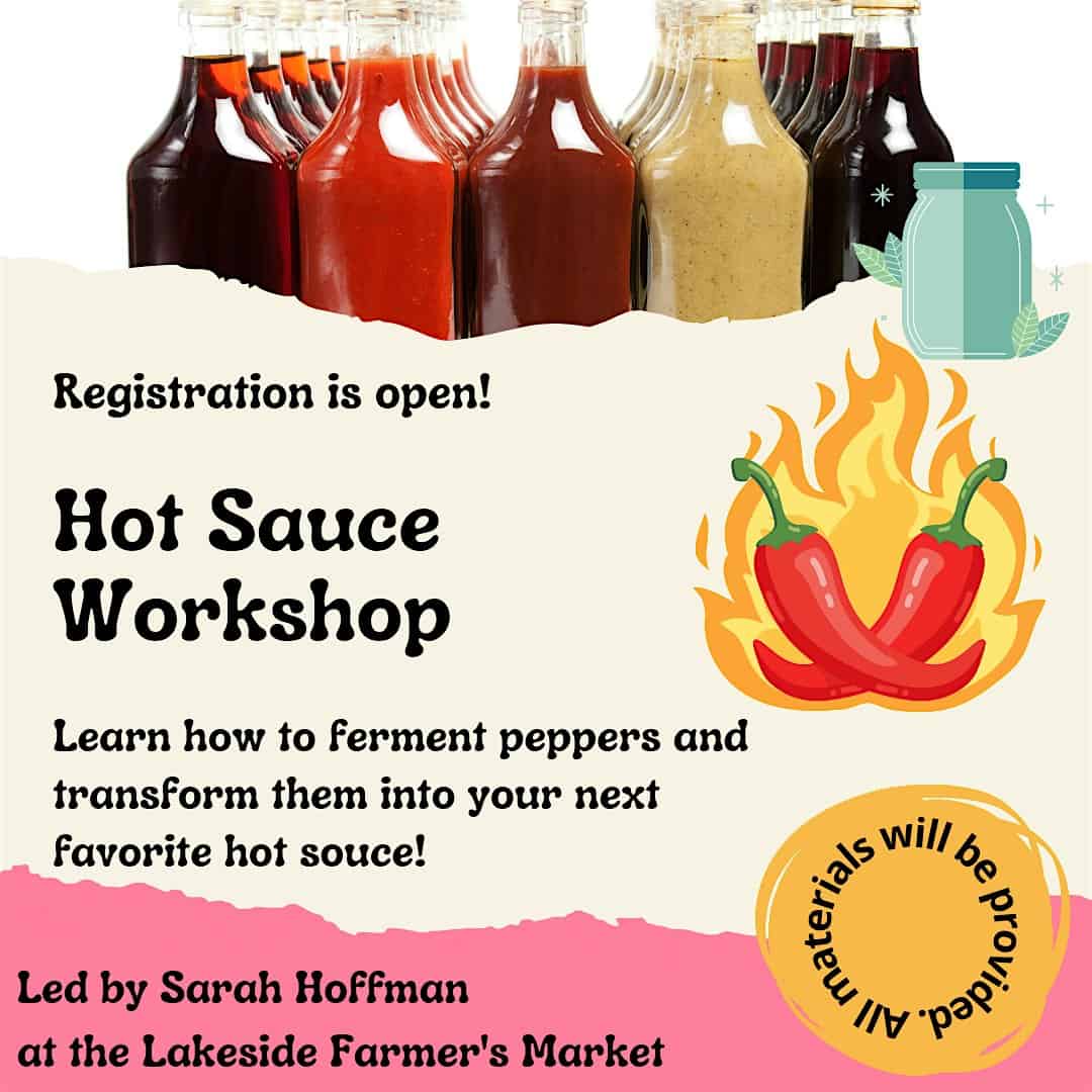 by admin14Feb Hot Sauce Workshop at Lakeside Farmers’ Market – Henrico, VA Hot Sauce Workshop at Lakeside Farmers’ Market – Henrico, VA 4 4 people viewed this event. Learn how to make hot sauce from fermentation to blending ingredients. Make it how you like it! Tickets-RSVP Link Date And Time Saturday, March 7th, 2026 08:00 PM (PST) Venue Lakeside Farmers' Market Location 6106 Lakeside Avenue, Henrico, VA 23228 Event Types Food & Drink Event Category Virginia Share With Friends Facebook Twitter Linkedin Xing Pinterest Share This Post: