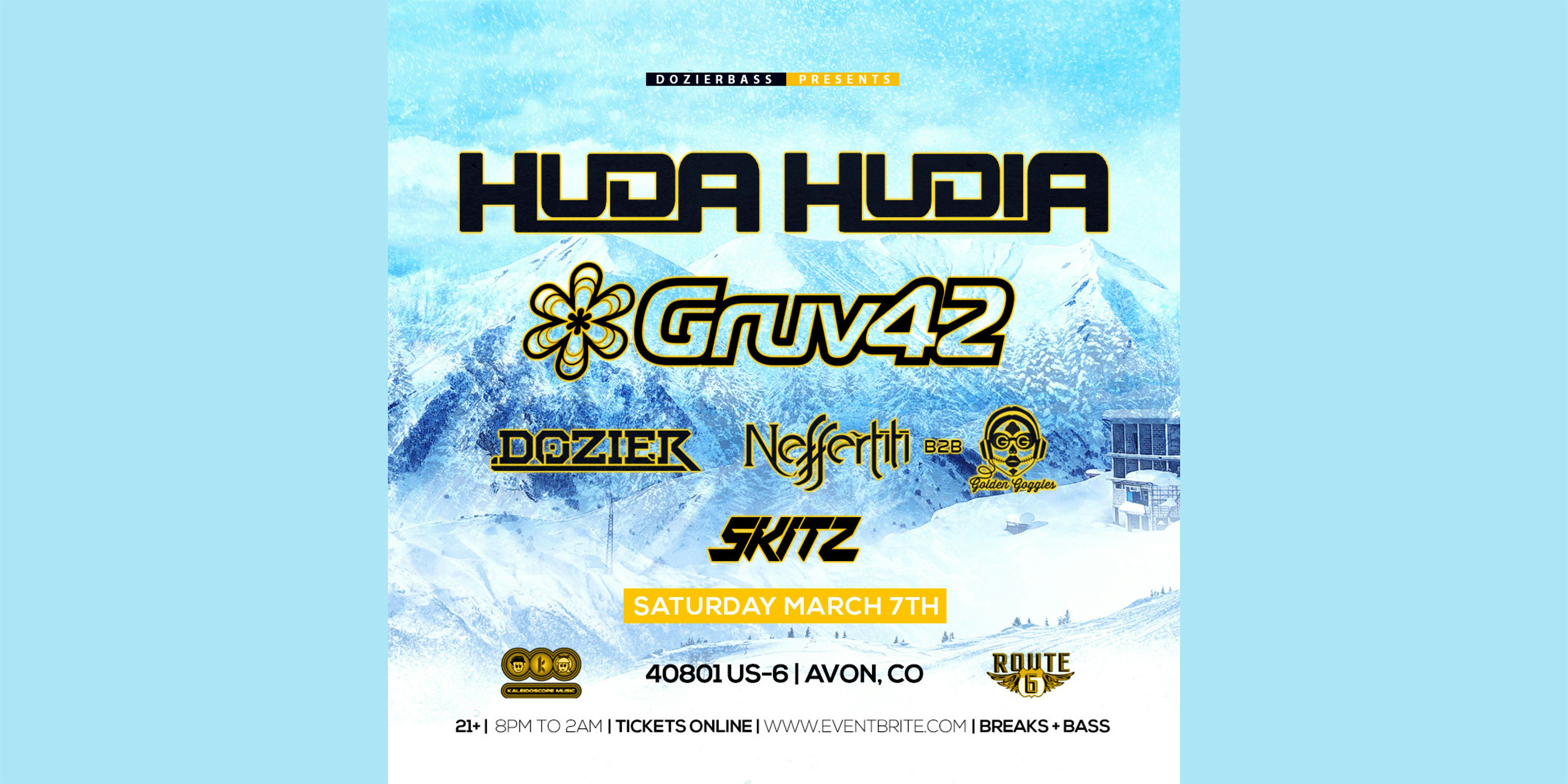 Huda Hudia, Gruv 42, Dozier, Neffertiti, Golden Goggles, Skitz at Route 6 Sports Lounge – Avon, CO