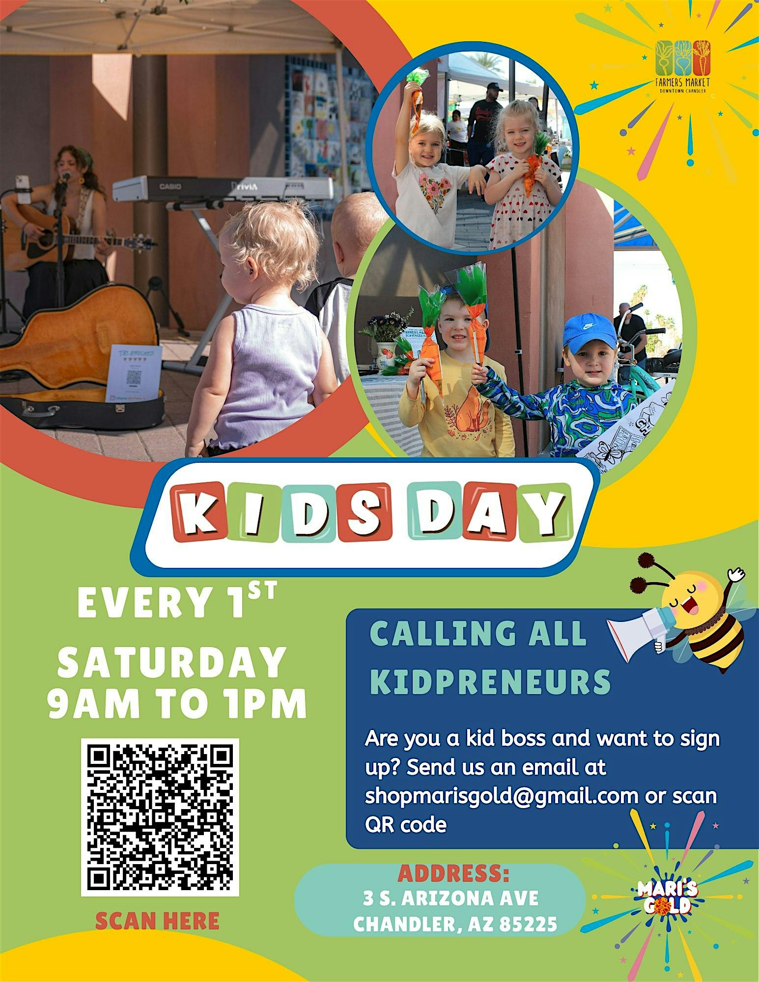 by admin27Feb Kids Day Downtown Chandlers Farmers Market at 3 S Arizona Ave – Chandler, AZ Kids Day Downtown Chandlers Farmers Market at 3 S Arizona Ave – Chandler, AZ 3 3 people viewed this event. Come hang out at Downtown Chandler’s Farmers Market for fresh eats, local goodies, and good vibes! Tickets-RSVP Link Date And Time Saturday, March 7th, 2026 09:00 AM (PST) Venue 3 S Arizona Ave Location 3 South Arizona Avenue, Chandler, AZ 85225 Event Types Festival or FairFood & Drink Event Category Arizona Share With Friends Facebook Twitter Linkedin Xing Pinterest Share This Post: