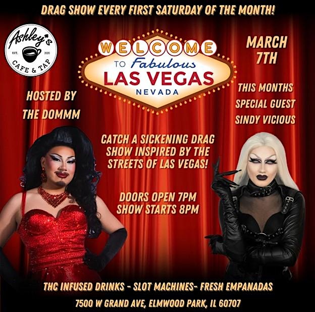 by admin05Mar Las Vegas Drag Show at Ashley’s Cafe at Ashley’s Cafe & Tap – Elmwood Park, IL Las Vegas Drag Show at Ashley’s Cafe at Ashley’s Cafe & Tap – Elmwood Park, IL 1 1 people viewed this event. Get ready to dazzle at Ashley’s with the fiercest queens of Vegas for a night of fun and glam! Tickets-RSVP Link Date And Time Saturday, March 7th, 2026 07:00 PM (PST) Venue Ashley's Cafe & Tap Location 7500 West Grand Avenue, Elmwood Park, IL 60707 Event Types Concert or PerformancePerforming & Visual Arts Event Category Illinois Share With Friends Facebook Twitter Linkedin Xing Pinterest Share This Post: