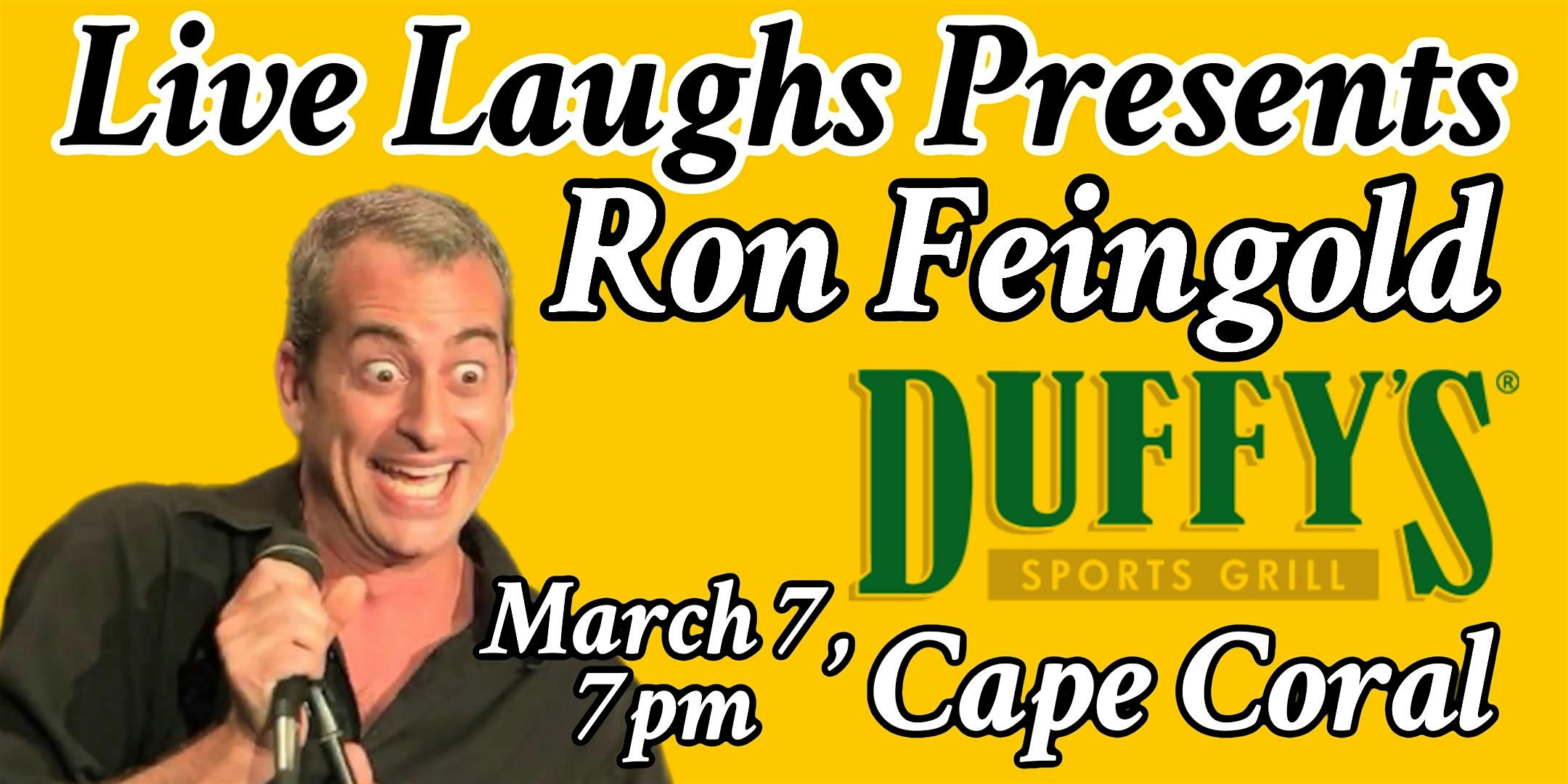 by admin05Mar Live Laughs Presents Ron Feingold at Duffy’s Sports Grill – Cape Coral, FL Live Laughs Presents Ron Feingold at Duffy’s Sports Grill – Cape Coral, FL 2 2 people viewed this event. Ron doesn’t just tell jokes; he delivers an unforgettable musical comedy show where every vocal part is sung by him—from bass to soprano. Tickets-RSVP Link Date And Time Saturday, March 7th, 2026 07:00 PM (PST) Venue Duffy's Sports Grill Location 627 Cape Coral Parkway West, Cape Coral, FL 33914 Event Types Concert or PerformancePerforming & Visual Arts Event Category Florida Share With Friends Facebook Twitter Linkedin Xing Pinterest Share This Post: