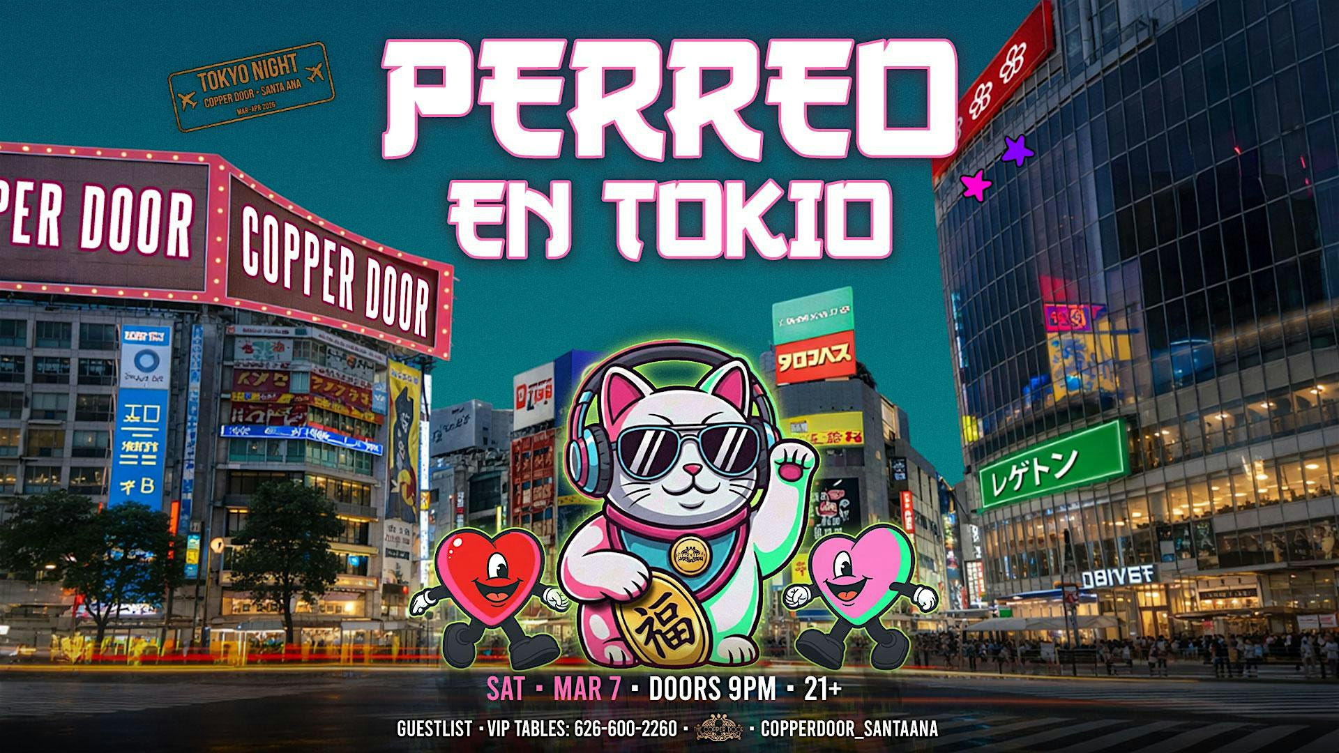 by admin27Feb Perreo En Tokio at The Copper Door – Santa Ana, CA Perreo En Tokio at The Copper Door – Santa Ana, CA 2 2 people viewed this event. PERREO EN TOKIO is your Saturday night Tokyo Night episode — reggaeton-forward, high-energy, and built for the dancefloor. Tickets-RSVP Link Date And Time Saturday, March 7th, 2026 @ 09:00 PM Location 225 N Broadway, Santa Ana, CA 92701 Event Types MusicParty or Social Gathering Event Category CaliforniaIrvine Share With Friends Facebook Twitter Linkedin Xing Pinterest Share This Post: