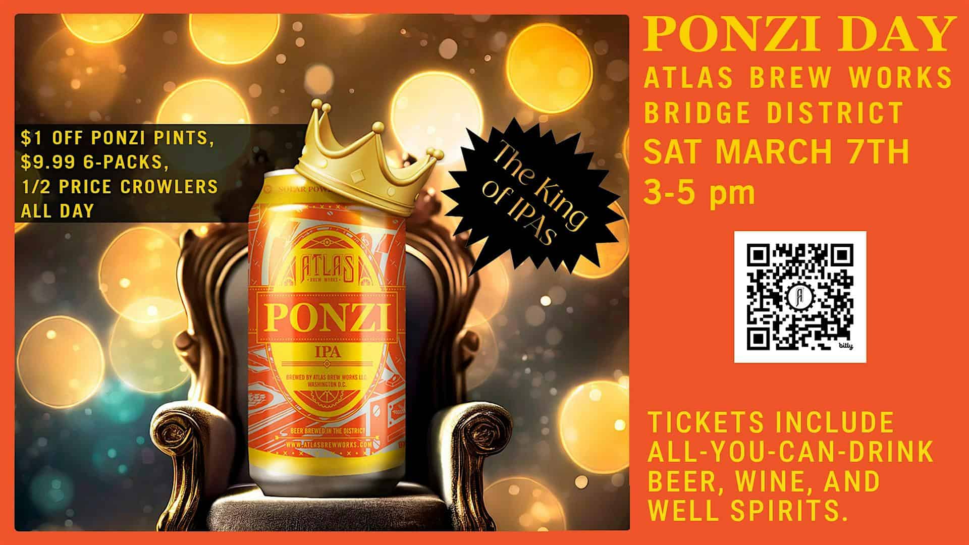 by admin23Feb Ponzi Day at Atlas Brew Works Bridge District at Atlas Brew Works & DaBo Burgers Bridge District – Washington, DC Ponzi Day at Atlas Brew Works Bridge District at Atlas Brew Works & DaBo Burgers Bridge District – Washington, DC 2 2 people viewed this event. Celebrate Ponzi Day it’s the infamous confidence man Charles Ponzi’s birthday. Featuring day-fresh Ponzi and other Ponzi variants! Tickets-RSVP Link Date And Time Saturday, March 7th, 2026 03:00 PM (PST) Venue Atlas Brew Works & DaBo Burgers Bridge District Location 600 Howard Road Southeast, Washington, DC 20020 Event Types Food & DrinkParty or Social Gathering Event Category Washington DC Share With Friends Facebook Twitter Linkedin Xing Pinterest Share This Post: