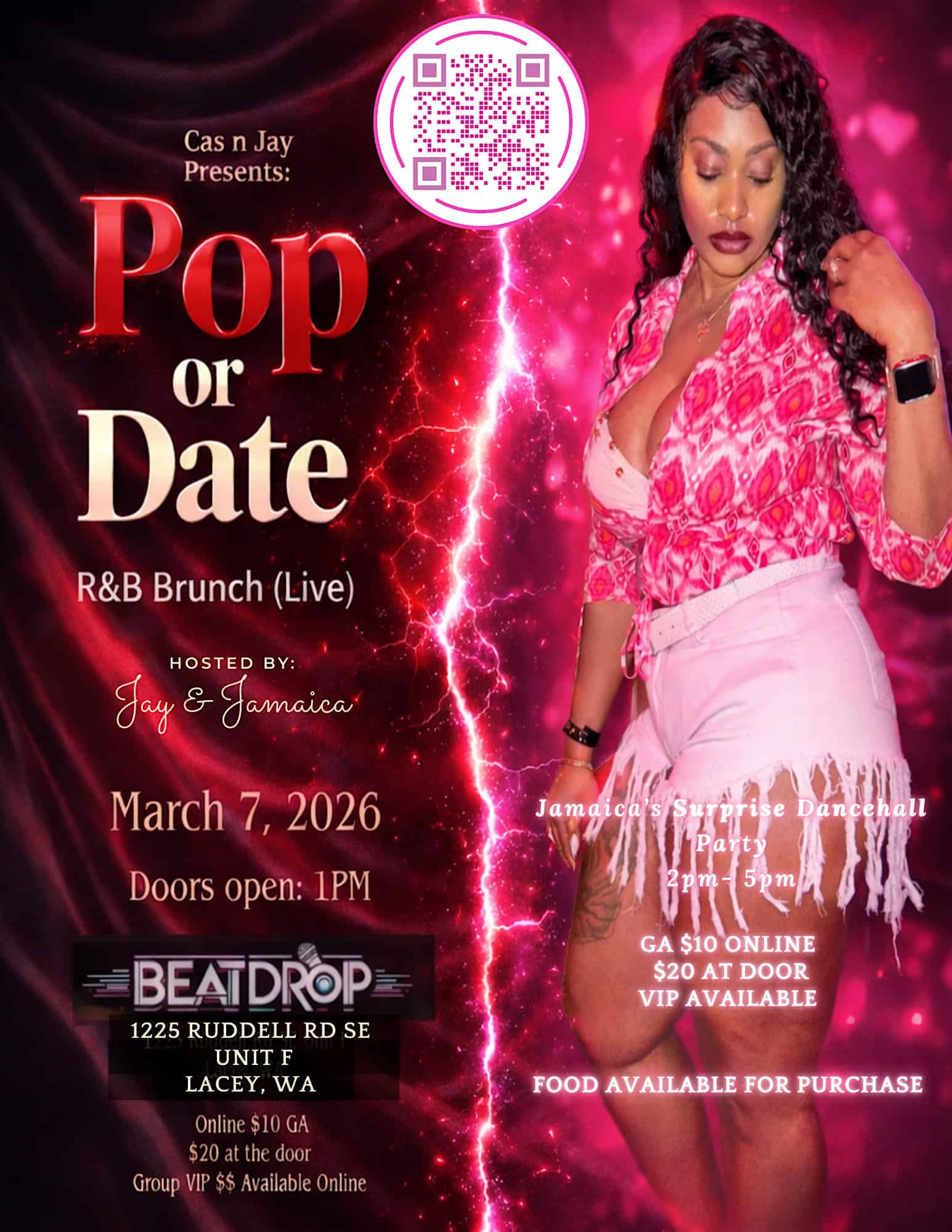 Pop or Date R&B Brunch & Jamaica’s Surprise Dancehall B-Day Bash at Beat Drop Kitchen and Event Center – Lacey, WA