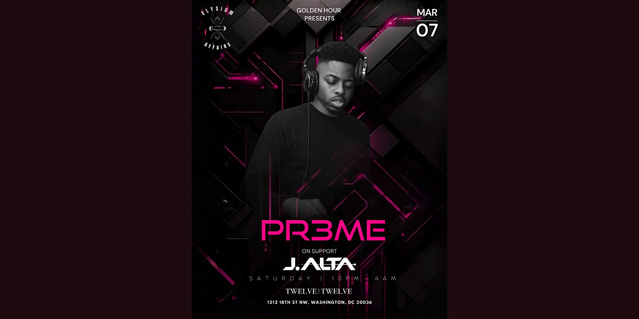 by admin05Mar PREME | J.ALTA at 1212 18th St NW – Washington, DC PREME | J.ALTA at 1212 18th St NW – Washington, DC 1 1 people viewed this event. Get ready to vibe all night with PREME and J.ALTA dropping fresh beats you won’t wanna miss. Tickets-RSVP Link Date And Time Saturday, March 7th, 2026 10:00 PM (PST) Venue 1212 18th St NW Location 1212 18th Street Northwest, Washington, DC 20036 Event Types Concert or PerformanceMusic Event Category Washington DC Share With Friends Facebook Twitter Linkedin Xing Pinterest Share This Post: