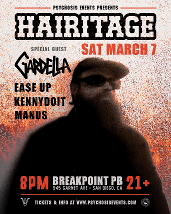 See Psychosis Events Presents Hairitage at Breakpoint Feat. Gardela Live in San Diego on Saturday, March 7, 2026, Doors Open at 8:00 PM