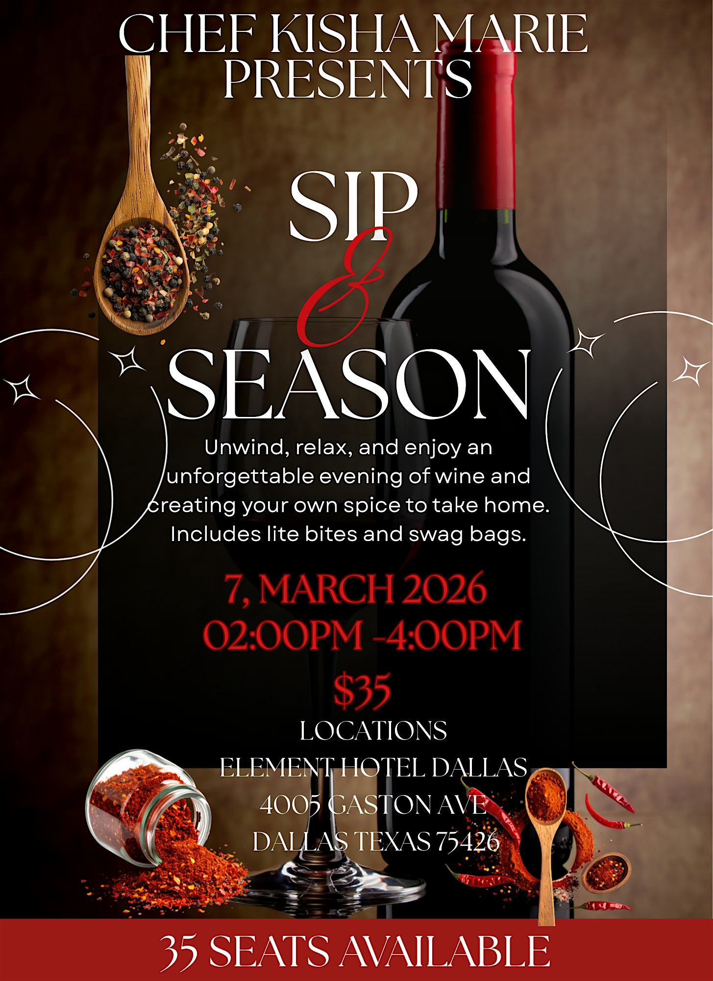 by admin27Feb Sip & Season at 4005 Gaston Ave – Dallas, TX Sip & Season at 4005 Gaston Ave – Dallas, TX 2 2 people viewed this event. Sip & Season is the haven for cooks, chef and anyone who likes being in the kitchen this is a ultimate vibe with good company! Tickets-RSVP Link Date And Time Saturday, March 7th, 2026 @ 02:00 AM Location 4005 Gaston Avenue, Dallas, TX 75246 Event Types Food & DrinkParty or Social Gathering Event Category DallasTexas Share With Friends Facebook Twitter Linkedin Xing Pinterest Share This Post: