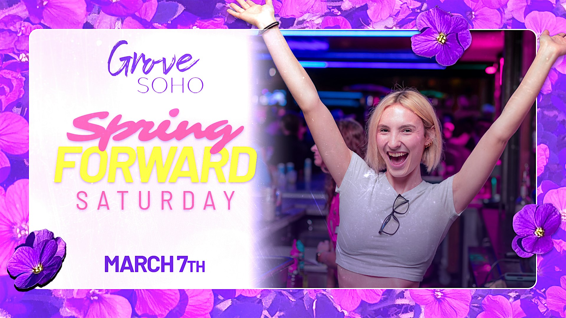 by admin27Feb Spring Forward Saturday at Grove Soho! at Grove Soho – Tampa, FL Spring Forward Saturday at Grove Soho! at Grove Soho – Tampa, FL 1 1 people viewed this event. You lose an hour, we give it back Tickets-RSVP Link Date And Time Saturday, March 7th, 2026 08:00 PM (PST) Venue Grove Soho Location 406 South Howard Avenue, Tampa, FL 33606 Event Types Food & DrinkParty or Social Gathering Event Category FloridaTampa Share With Friends Facebook Twitter Linkedin Xing Pinterest Share This Post: