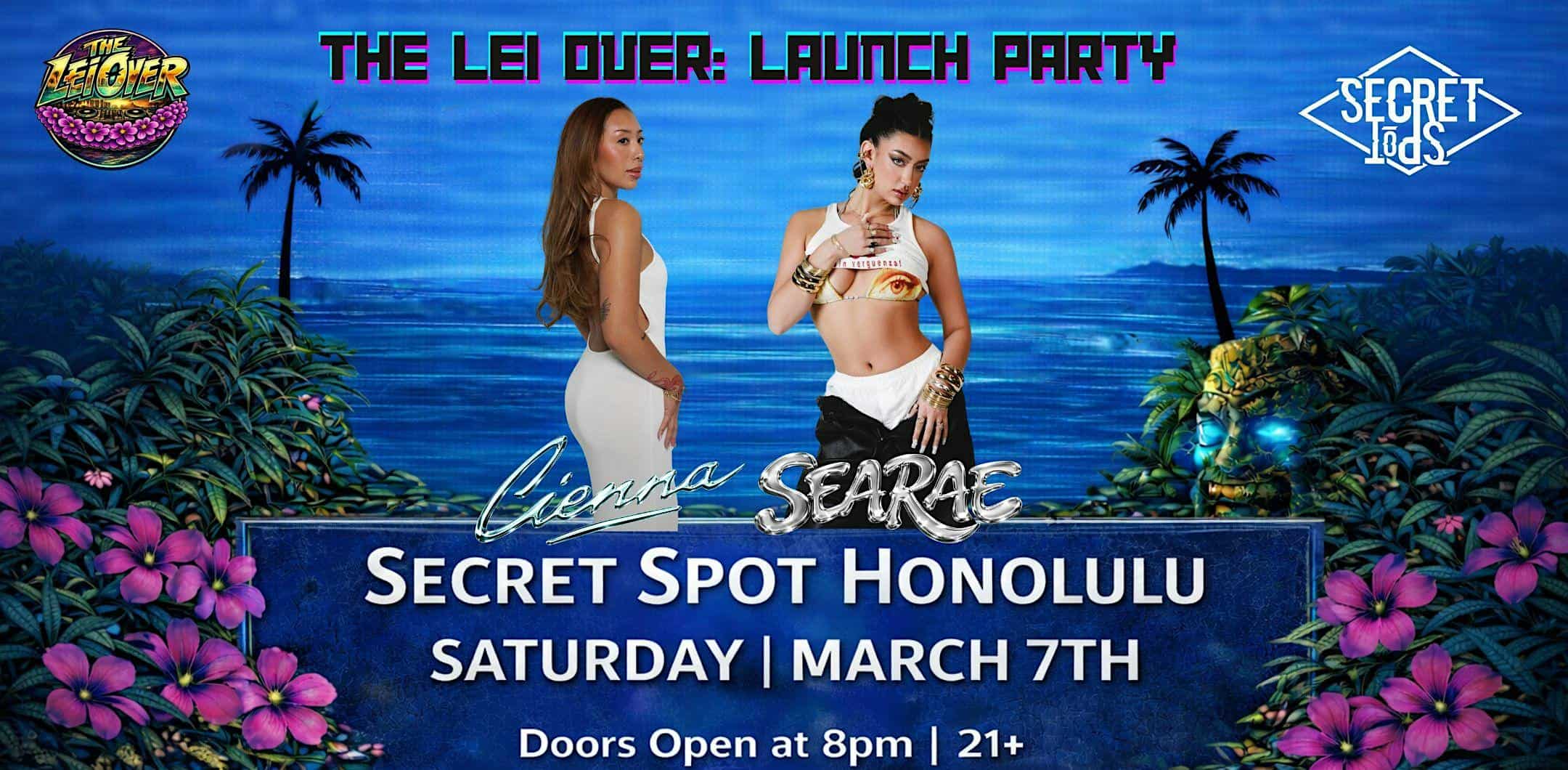 by admin23Feb The Lei Over: Launch Party! at Secret Spot Honolulu – Honolulu, HI The Lei Over: Launch Party! at Secret Spot Honolulu – Honolulu, HI 1 1 people viewed this event. The Lei Over launches with DJ Sea Rae & DJ Cienna, with support from local DJs bringing hip-hop and R&B hits all night long! Dont miss out! Tickets-RSVP Link Date And Time Saturday, March 7th, 2026 08:00 PM (PST) Venue Secret Spot Honolulu Location 2299 Kūhiō Avenue, Honolulu, HI 96815 Event Types Party or Social Gathering Event Category HawaiiHonolulu Share With Friends Facebook Twitter Linkedin Xing Pinterest Share This Post: