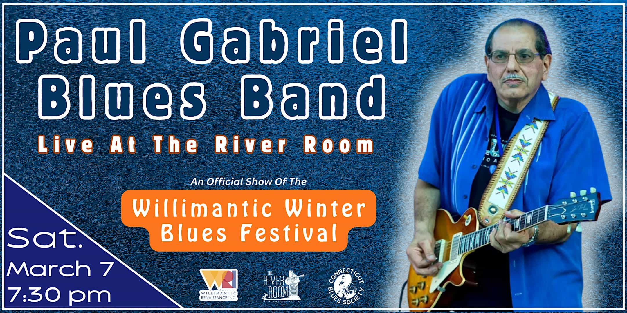 by admin23Feb The Paul Gabriel Blues Band – A Willimantic Winter Blues Fest Event! at The River Room – Willimantic, CT The Paul Gabriel Blues Band – A Willimantic Winter Blues Fest Event! at The River Room – Willimantic, CT 2 2 people viewed this event. Paul Gabriel Blues Band brings award-winning, Hall of Fame blues to The River Room, March 7, 7:30 PM. Part of Winter Blues Fest! Tickets-RSVP Link Date And Time Saturday, March 7th, 2026 07:00 PM (PST) Venue The River Room Location 50 Riverside Drive, Willimantic, CT 6226 Event Types Concert or PerformanceMusic Event Category Connecticut Share With Friends Facebook Twitter Linkedin Xing Pinterest Share This Post: