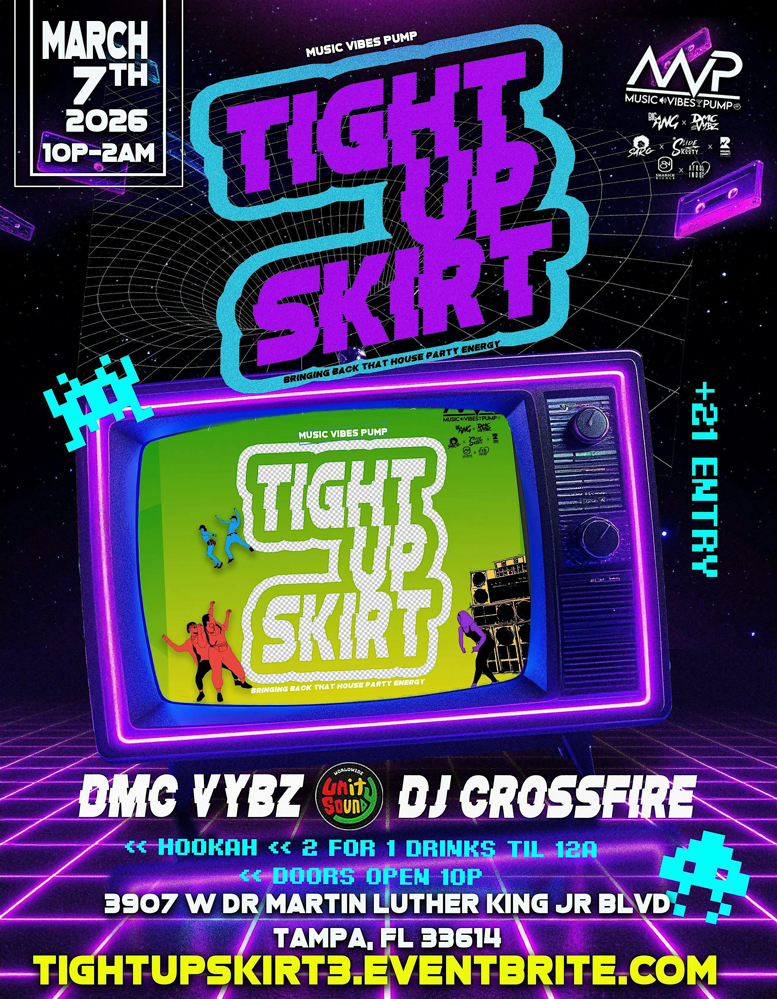 by admin23Feb Tight Up Skirt 90s/2000s Dancehall. Soca, Hip Hop at 3907 W Dr Martin Luther King Jr Blvd – Tampa, FL Tight Up Skirt 90s/2000s Dancehall. Soca, Hip Hop at 3907 W Dr Martin Luther King Jr Blvd – Tampa, FL 2 2 people viewed this event. Get ready to re liveto the best dancehall, soca, and hip hop tunes from the 90s and 2000s – it’s going to be lit! Tickets-RSVP Link Date And Time Saturday, March 7th, 2026 10:00 PM (PST) Venue 3907 W Dr Martin Luther King Jr Blvd Location 3907 West Doctor Martin Luther King Junior Boulevard, Tampa, FL 33614 Event Types Concert or PerformanceMusic Event Category FloridaTampa Share With Friends Facebook Twitter Linkedin Xing Pinterest Share This Post: