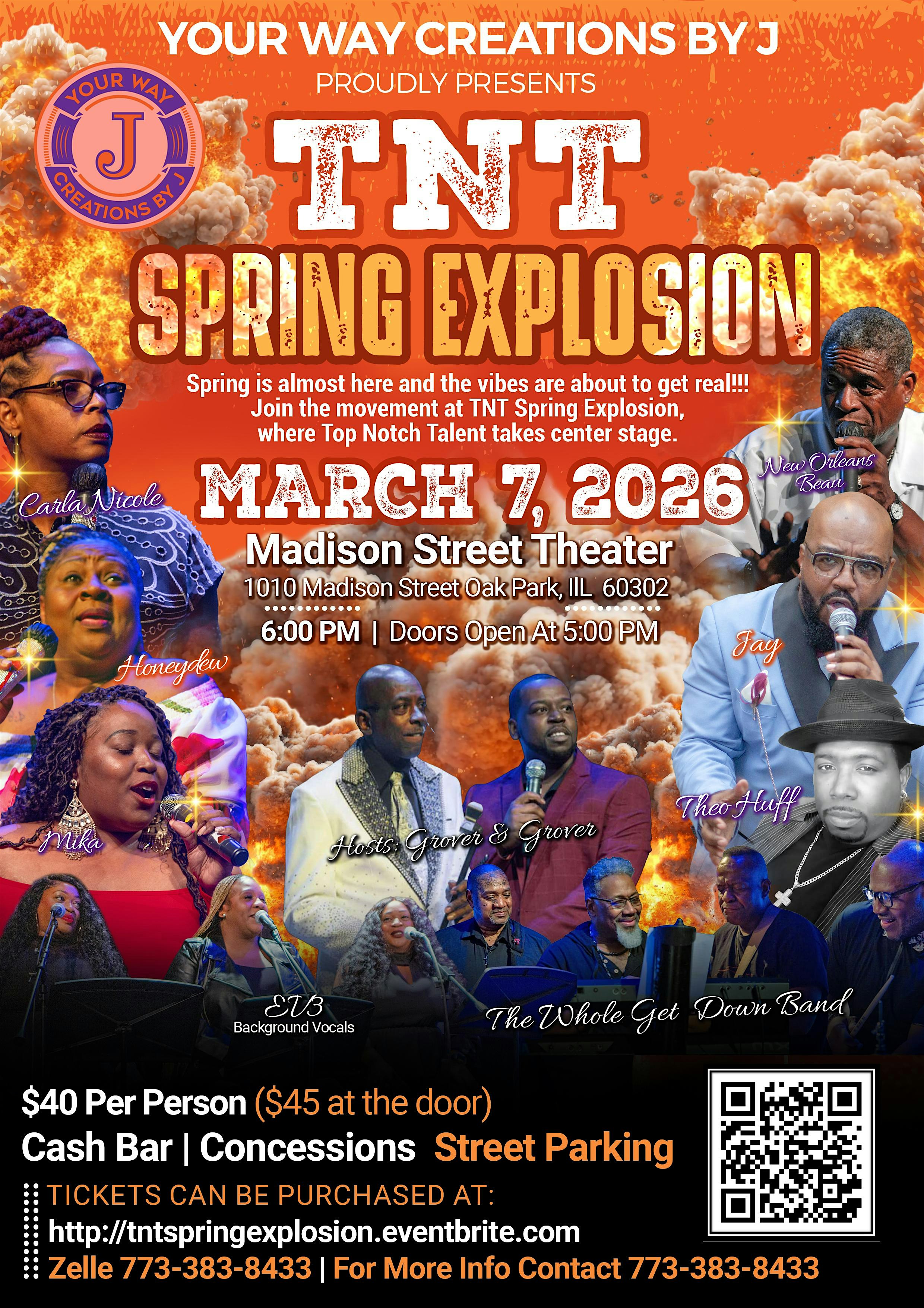 by admin23Feb TNT SPRING EXPLOSION at Madison Street Theater – Oak Park, IL TNT SPRING EXPLOSION at Madison Street Theater – Oak Park, IL 2 2 people viewed this event. Get ready to ignite with explosive music and high-energy vibes at TNT Spring Explosion! Tickets-RSVP Link Date And Time Saturday, March 7th, 2026 06:00 PM (PST) Venue Madison Street Theater Location 1010 Madison Street, Oak Park, IL 60302 Event Types Concert or PerformanceMusic Event Category Illinois Share With Friends Facebook Twitter Linkedin Xing Pinterest Share This Post: