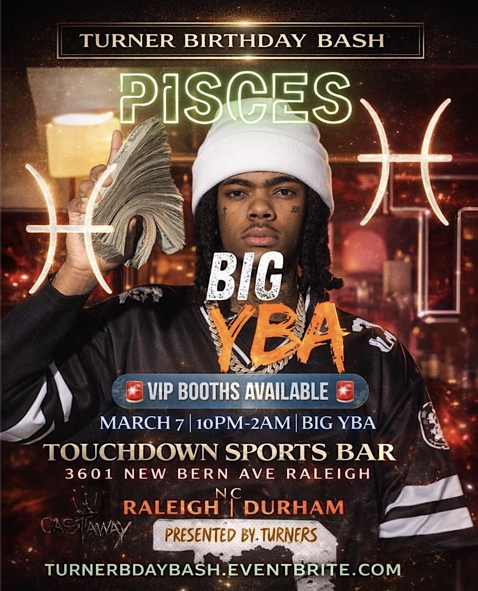 by admin23Feb Turner Birthday Bash at Touchdown Sports Bar – Raleigh, NC Turner Birthday Bash at Touchdown Sports Bar – Raleigh, NC 3 3 people viewed this event. Get ready to party hard at Turner’s Birthday Bash! BIG YBA will be performing live at Touchdown Sports Bar! Tickets-RSVP Link Date And Time Saturday, March 7th, 2026 10:00 PM (PST) Venue Touchdown Sports Bar Location 3601 New Bern Avenue, Raleigh, NC 27610 Event Types Community & CultureParty or Social Gathering Event Category North CarolinaRaleigh Share With Friends Facebook Twitter Linkedin Xing Pinterest Share This Post: