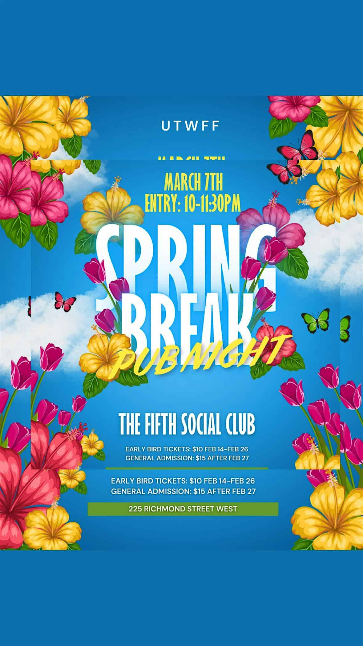 by admin23Feb UTWFF Pub Night at The Fifth Social Club – Toronto, Canada UTWFF Pub Night at The Fifth Social Club – Toronto, Canada 5 5 people viewed this event. UTWFF Pub Night Tickets-RSVP Link Date And Time Saturday, March 7th, 2026 @ 10:00 PM Location 225 Richmond Street West, Toronto, Canada M5V 1W2 Event Types Film, Media & EntertainmentParty or Social Gathering Event Category CanadaToronto Share With Friends Facebook Twitter Linkedin Xing Pinterest Share This Post: