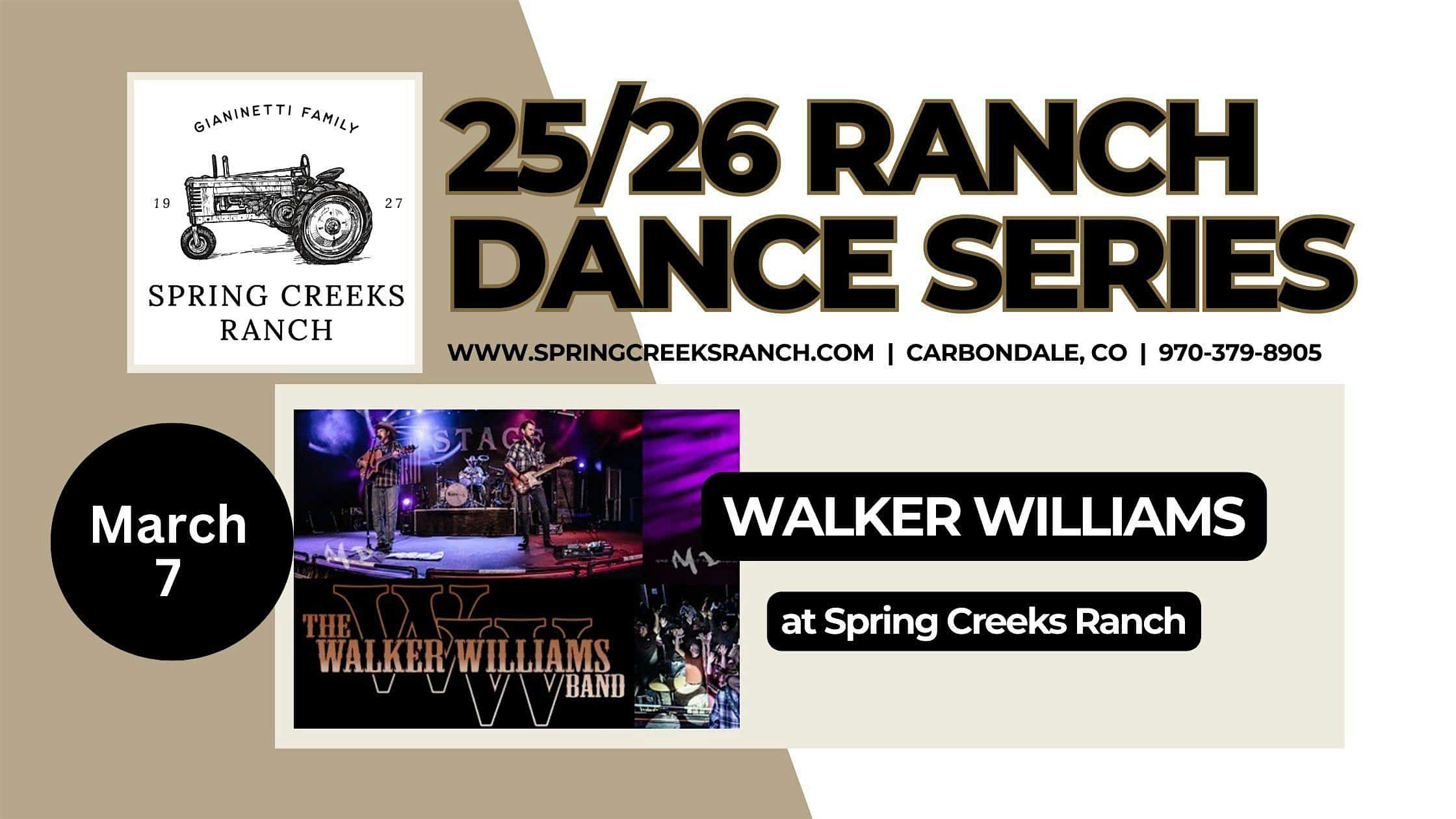 by admin23Feb WALKER WILLIAMS at Spring Creeks Ranch – Carbondale, CO WALKER WILLIAMS at Spring Creeks Ranch – Carbondale, CO 1 1 people viewed this event. Join us for the Ranch Dance Series finale with Walker Williams, your last chance to dance and enjoy community at Spring Creeks Ranch! Tickets-RSVP Link Date And Time Saturday, March 7th, 2026 @ 06:00 PM Location 644 Cowen Drive, Carbondale, CO 81623 Event Types Party or Social GatheringPerforming & Visual Arts Event Category Colorado Share With Friends Facebook Twitter Linkedin Xing Pinterest Share This Post: