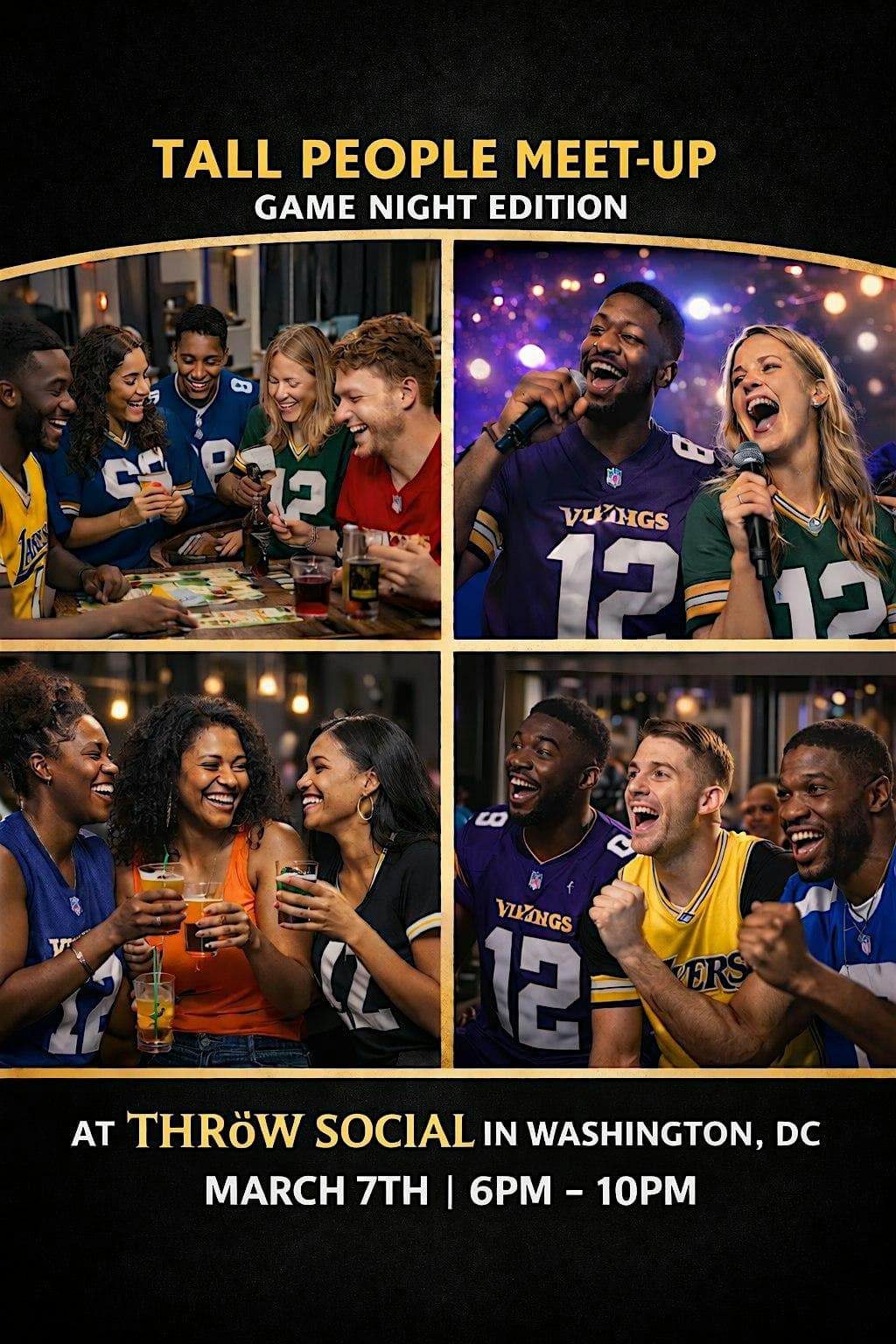 by admin23Feb Where Tall People Meet “Game Night Edition” at THRōW Social DC – Washington, DC Where Tall People Meet “Game Night Edition” at THRōW Social DC – Washington, DC 5 5 people viewed this event. Get ready to vibe and play at Where Tall People Meet – Game Night Edition, an in-person fun fest! Tickets-RSVP Link Date And Time Saturday, March 7th, 2026 @ 06:00 PM Location 1401 Okie Street Northeast, Washington, DC 20002 Event Types Community & CultureParty or Social Gathering Event Category Washington DC Share With Friends Facebook Twitter Linkedin Xing Pinterest Share This Post: