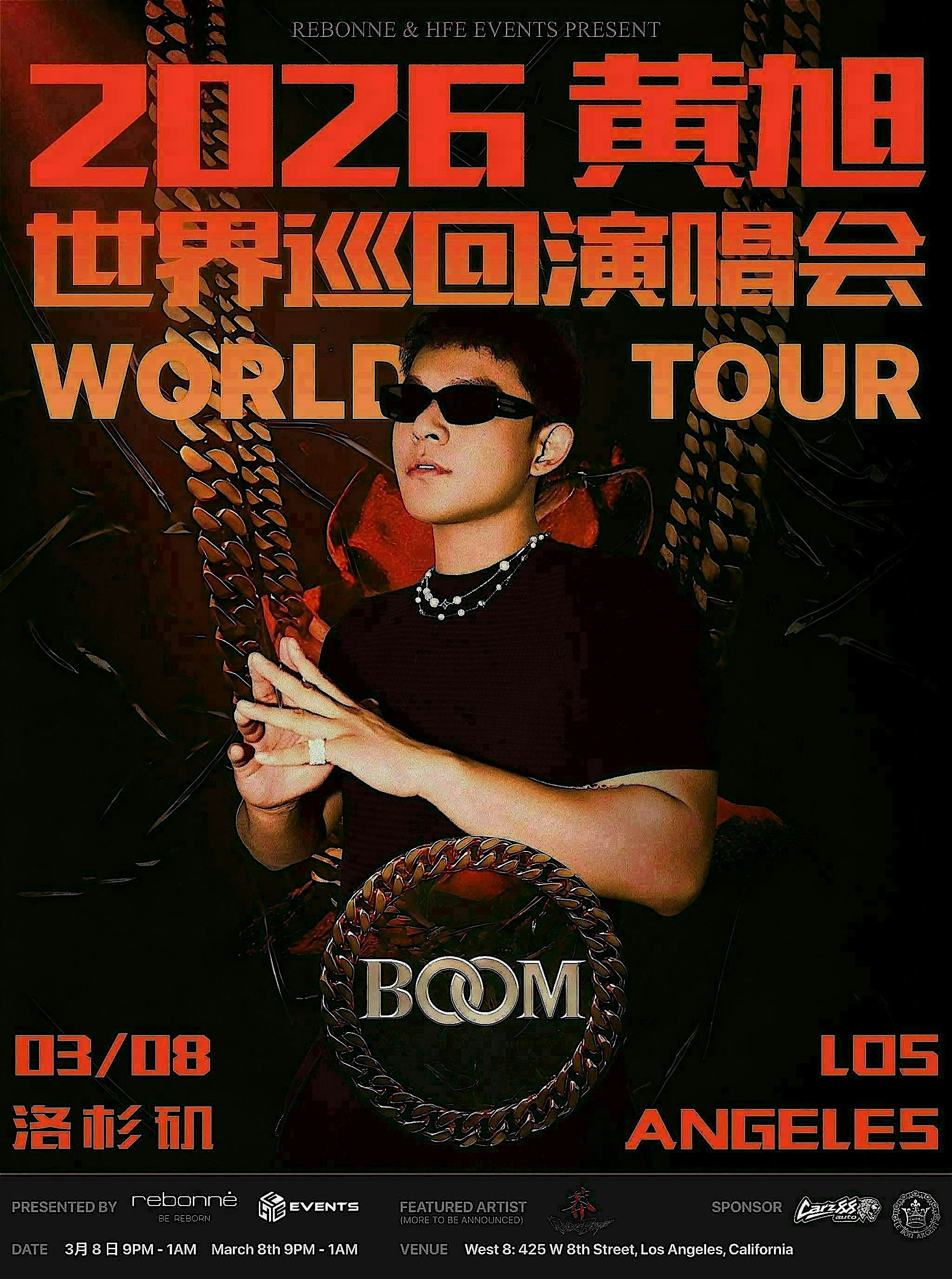 by admin23Feb 黄旭BOOM世界巡回演唱会洛杉矶LA站 at West Eight Los Angeles – Los Angeles, CA 黄旭BOOM世界巡回演唱会洛杉矶LA站 at West Eight Los Angeles – Los Angeles, CA 2 2 people viewed this event. 黄旭BOOM世界巡回演唱会洛杉矶站火热来袭,现场嗨翻全场,千万别错过! Tickets-RSVP Link Date And Time Sunday, March 8th, 2026 08:00 PM (PST) Venue West Eight Los Angeles Location 425 West 8th Street, Los Angeles, CA 90014 Event Types Concert or PerformanceMusic Event Category CaliforniaLos Angeles Share With Friends Facebook Twitter Linkedin Xing Pinterest Share This Post:
