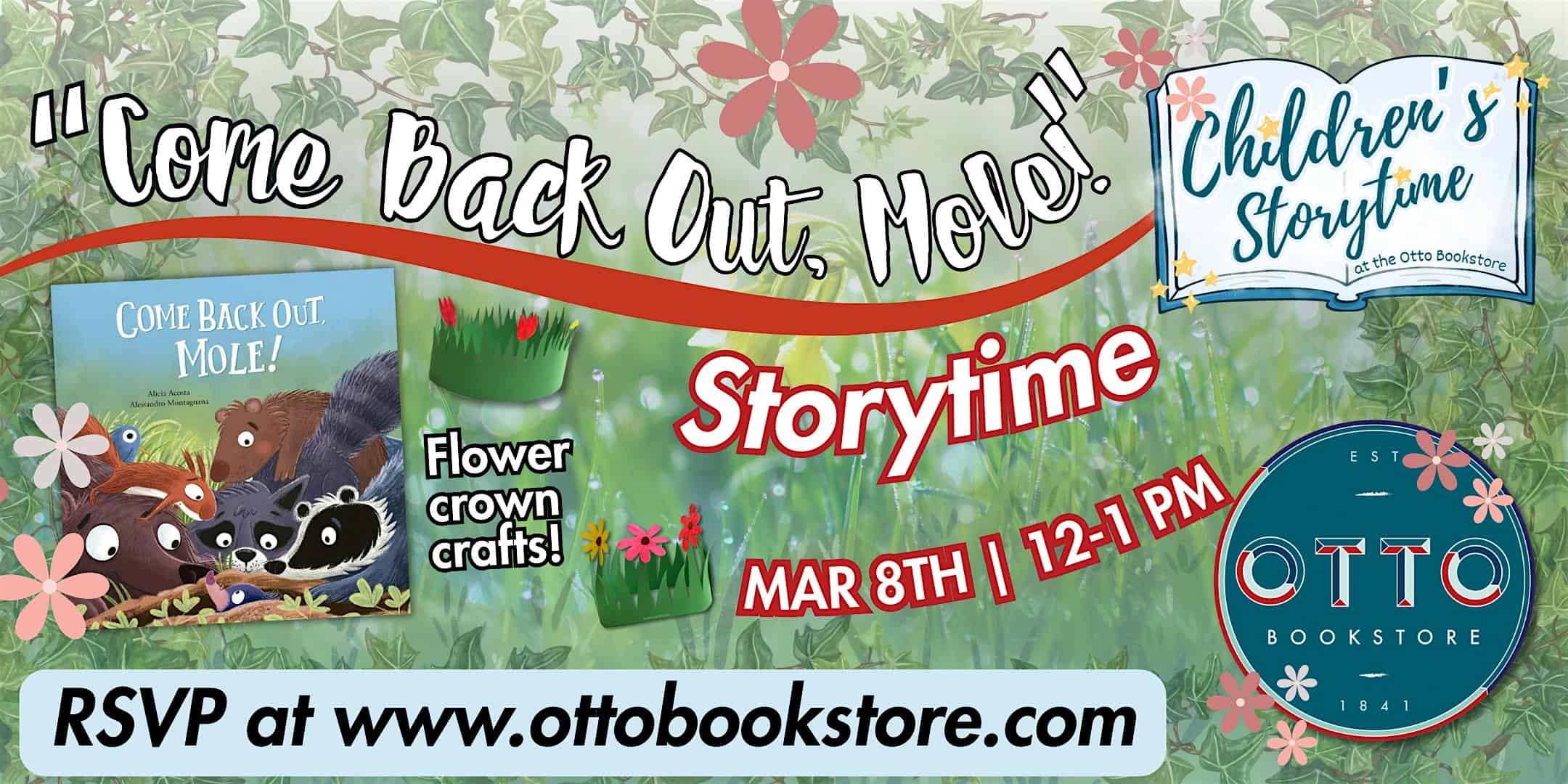 by admin23Feb Come Back Out Mole Storytime at The Otto Bookstore – Williamsport, PA Come Back Out Mole Storytime at The Otto Bookstore – Williamsport, PA 1 1 people viewed this event. Join us on Sunday, March 8th from 12–1 PM for storytime at The Otto Bookstore! Tickets-RSVP Link Date And Time Sunday, March 8th, 2026 12:00 PM (PST) Venue The Otto Bookstore Location 107 West 4th Street, Williamsport, PA 17701 Event Types Party or Social Gathering Event Category Pennsylvania Share With Friends Facebook Twitter Linkedin Xing Pinterest Share This Post: