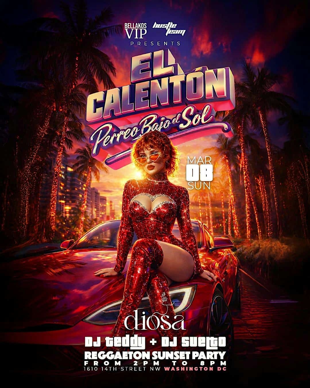 by admin23Feb EL CALENTÓN: PERREO BAJO EL SOL at Diosa DC – Washington, DC EL CALENTÓN: PERREO BAJO EL SOL at Diosa DC – Washington, DC 1 1 people viewed this event. EL CALENTÓN: Perreo Bajo el Sol — Sunset reggaetón vibes, high energy, and nonstop dancing. Tickets-RSVP Link Date And Time Sunday, March 8th, 2026 @ 02:00 PM Location 1610 14th Street Northwest, Washington, DC 20009 Event Types MusicParty or Social Gathering Event Category Washington DC Share With Friends Facebook Twitter Linkedin Xing Pinterest Share This Post: