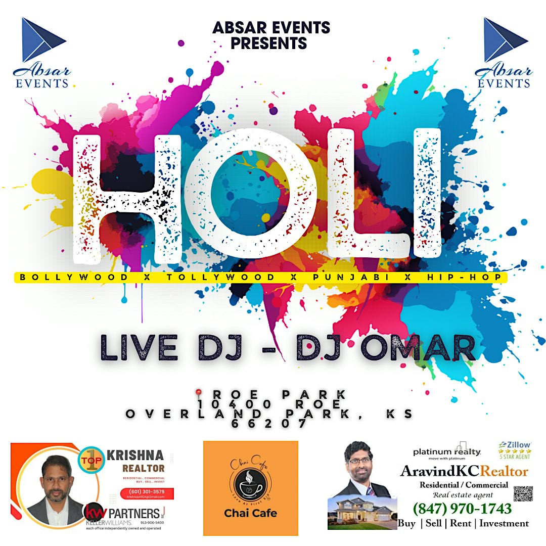 by admin05Mar HOLI – COLOR PARTY at Roe Park – Overland Park, KS HOLI – COLOR PARTY at Roe Park – Overland Park, KS 2 2 people viewed this event. Celebrate HOLI – COLOR PARTY with vibrant powders, music, and good vibes in a fun-filled, colorful bash! Tickets-RSVP Link Date And Time Sunday, March 8th, 2026 01:00 PM (PST) Venue Roe Park Location 10400 Roe Avenue, Overland Park, KS 66207 Event Types Community & CultureParty or Social Gathering Event Category Kansas Share With Friends Facebook Twitter Linkedin Xing Pinterest Share This Post:
