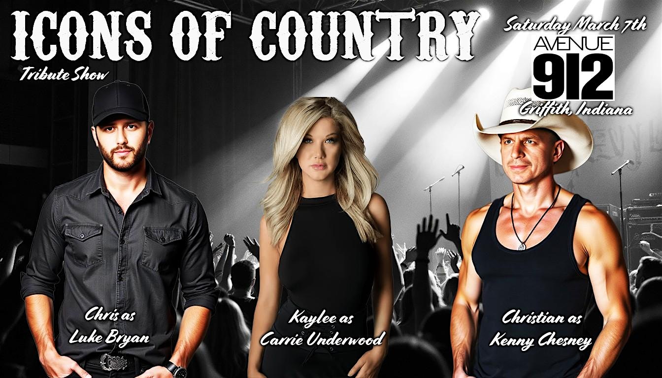 by admin13Feb ICONS OF COUNTRY – Tributes to Luke Bryan, Carrie Underwood & Kenny Chesney at Avenue 912 – Griffith, IN ICONS OF COUNTRY – Tributes to Luke Bryan, Carrie Underwood & Kenny Chesney at Avenue 912 – Griffith, IN 1 1 people viewed this event. Get ready to dance and sing along to the best country hits with our ICONS OF COUNTRY tribute event! Tickets-RSVP Link Date And Time Sunday, March 8th, 2026 12:00 AM (PST) Venue Avenue 912 Location 202 West Ridge Road, Griffith, IN 46319 Event Types Concert or PerformanceMusic Event Category Indiana Share With Friends Facebook Twitter Linkedin Xing Pinterest Share This Post: