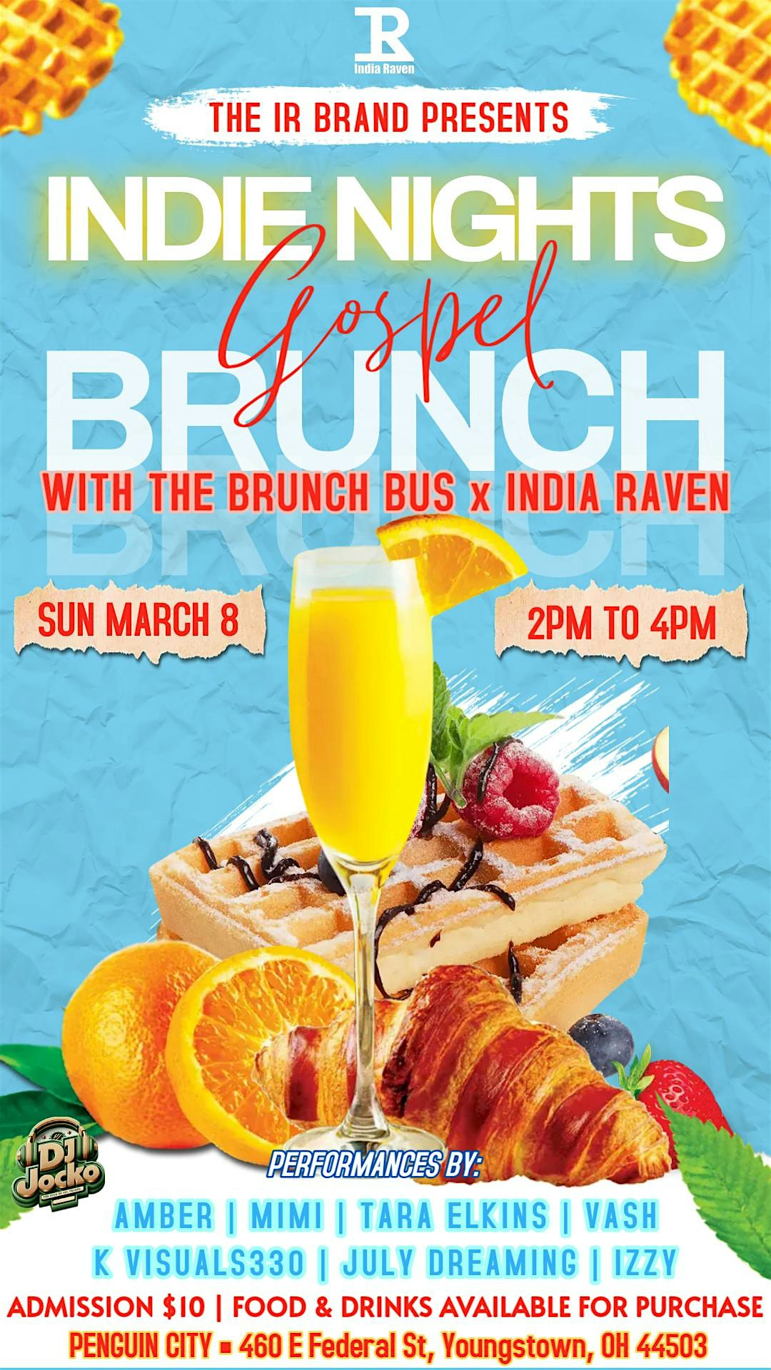 by admin05Mar Indie Nights Gospel Brunch with The Brunch Bus x India Raven at Penguin City Brewing Company – Youngstown, OH Indie Nights Gospel Brunch with The Brunch Bus x India Raven at Penguin City Brewing Company – Youngstown, OH 2 2 people viewed this event. INDIE NIGHTS IS PARTNERING WITH THE BRUNCH BUS & PENGUIN CITY FOR THE FIRST EVER BRUNCH EDITION BROUGHT TO YOU BY THE IR BRAND Tickets-RSVP Link Date And Time Sunday, March 8th, 2026 02:00 PM (PST) Venue Penguin City Brewing Company Location 460 East Federal Street, Youngstown, OH 44503 Event Types Concert or PerformanceMusic Event Category Ohio Share With Friends Facebook Twitter Linkedin Xing Pinterest Share This Post: