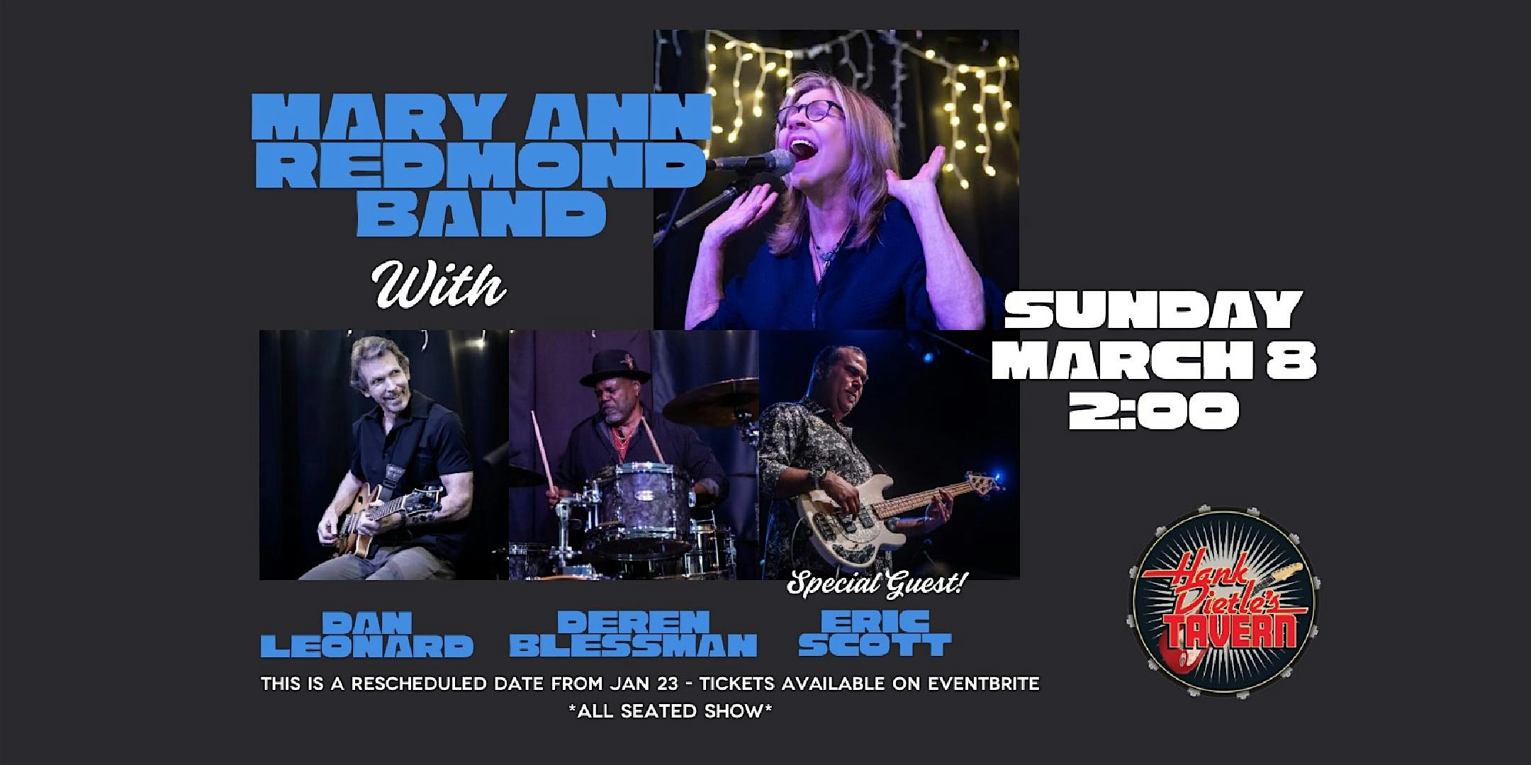 by admin13Feb Mary Ann Redmond Band at Hank Dietle’s Tavern – Rockville, MD Mary Ann Redmond Band at Hank Dietle’s Tavern – Rockville, MD 2 2 people viewed this event. Get ready for a groovy afternoon filled with the soulful tunes of the Mary Ann Redmond Band Tickets-RSVP Link Date And Time Sunday, March 8th, 2026 06:00 PM (PST) Venue Hank Dietle's Tavern Location 11010 Rockville Pike, Rockville, MD 20852 Event Types Concert or PerformanceMusic Event Category MarylandSilver Spring Share With Friends Facebook Twitter Linkedin Xing Pinterest Share This Post: