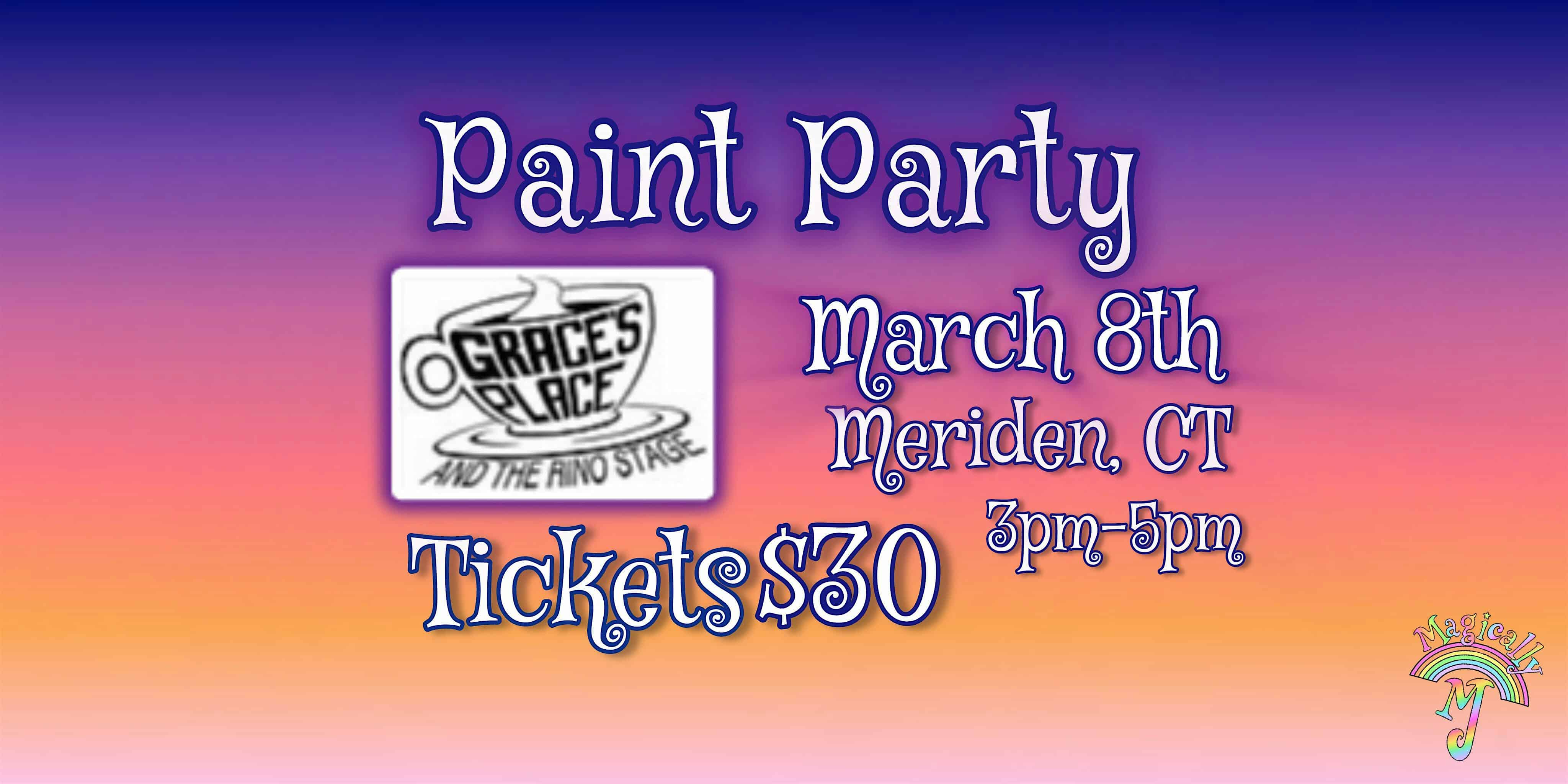 by admin23Feb Paint Party At Grace’s Place! at Grace’s Place and the Rino Stage – Meriden, CT Paint Party At Grace’s Place! at Grace’s Place and the Rino Stage – Meriden, CT 3 3 people viewed this event. Come join us at Grace’s Place in Meriden, CT, for a night of painting and vibing – bring your creativity! Tickets-RSVP Link Date And Time Sunday, March 8th, 2026 @ 03:00 PM Location 1237 East Main Street, Meriden, CT 6450 Event Types Party or Social GatheringPerforming & Visual Arts Event Category Connecticut Share With Friends Facebook Twitter Linkedin Xing Pinterest Share This Post: