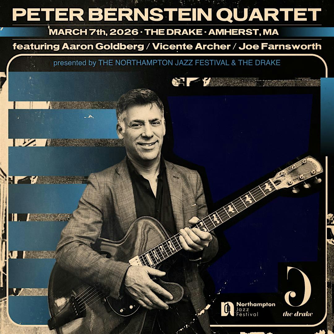 by admin13Feb PETER BERNSTEIN QUARTET at The Drake – Amherst, MA PETER BERNSTEIN QUARTET at The Drake – Amherst, MA 1 1 people viewed this event. Peter Bernstein (guitar), featuring Aaron Goldberg (piano), Vicente Archer (bass), Joe Farnsworth (drums) Tickets-RSVP Link Date And Time Sunday, March 8th, 2026 01:00 AM (PST) Venue The Drake Location 44 N Pleasant St, Amherst, MA 1002 Event Types Concert or PerformanceMusic Event Category Massachusetts Share With Friends Facebook Twitter Linkedin Xing Pinterest Share This Post: