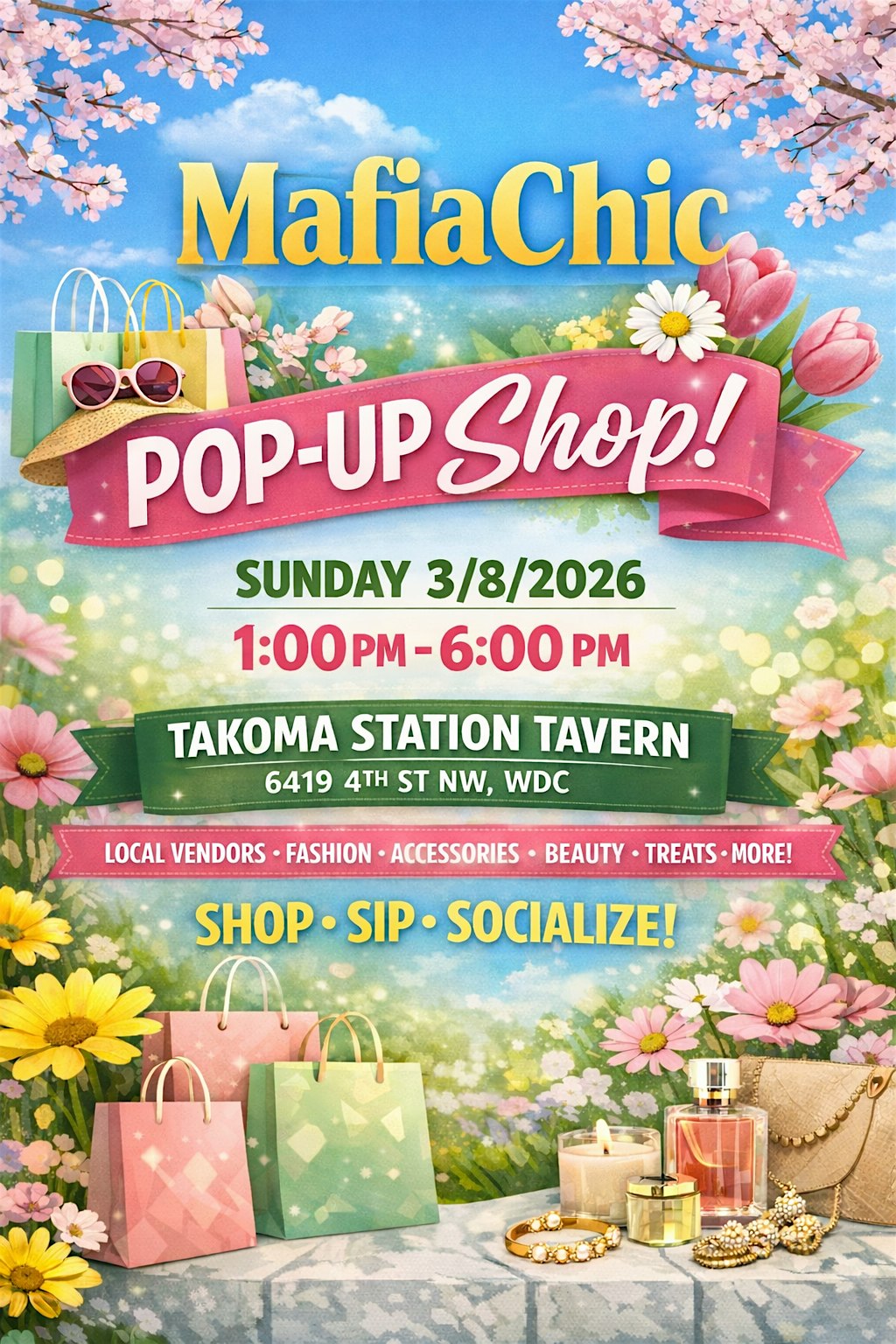 by admin23Feb Pop Up Soiree at 6914 4th St NW – Washington, DC Pop Up Soiree at 6914 4th St NW – Washington, DC 2 2 people viewed this event. Join the fabulous ladies of Mafia Chic for an afternoon of celebration • shopping • sisterhood • community ✨ Tickets-RSVP Link Date And Time Sunday, March 8th, 2026 01:00 PM (PST) Venue 6914 4th St NW Location 6914 4th Street Northwest, Washington, DC 20012 Event Types Food & DrinkParty or Social Gathering Event Category Washington DC Share With Friends Facebook Twitter Linkedin Xing Pinterest Share This Post: