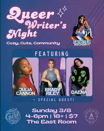 Queer Writer’s Night feat: Julia Cannon / Brady Riley / Daena at The East Room – Nashville, TN