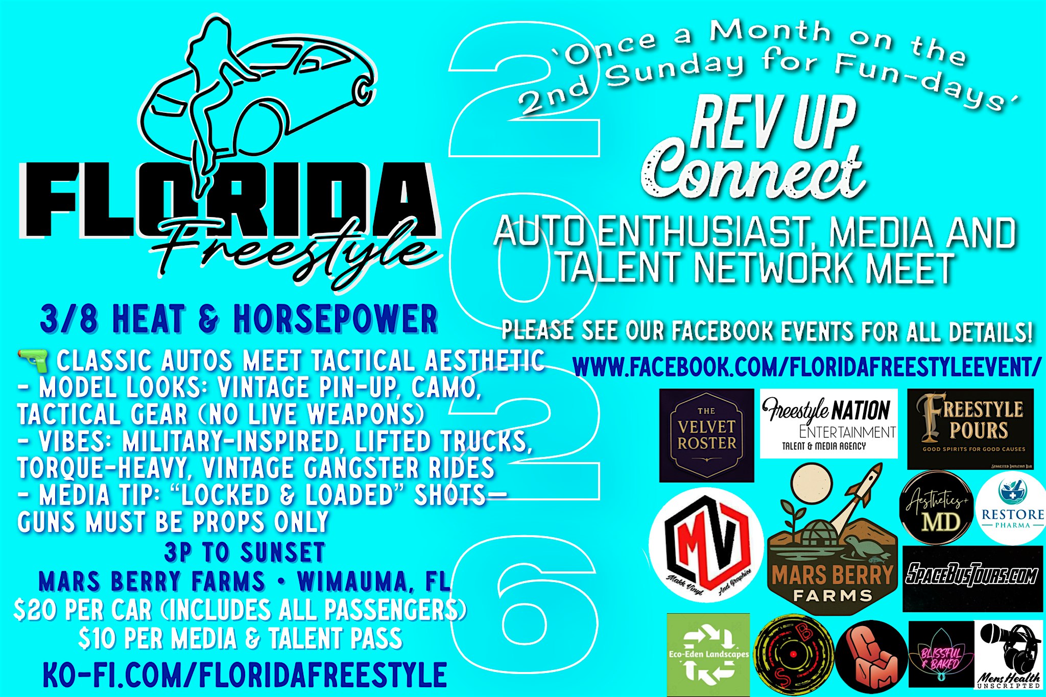 by admin23Feb REV UP CONNECT “Heat & Horsepower” by Florida Freestyle at 5010 Ruth Morris Rd – Wimauma, FL REV UP CONNECT “Heat & Horsepower” by Florida Freestyle at 5010 Ruth Morris Rd – Wimauma, FL 2 2 people viewed this event. ✨ Monthly Themes, Styled Scenes: Each Rev Up Connect is networking, content creation & good vibes all wrapped in a beautiful Sunday Sunset. Tickets-RSVP Link Date And Time Sunday, March 8th, 2026 03:00 PM (PST) Venue 5010 Ruth Morris Rd Location 5010 Ruth Morris Road, Wimauma, FL 33598 Event Types Party or Social Gathering Event Category Florida Share With Friends Facebook Twitter Linkedin Xing Pinterest Share This Post: