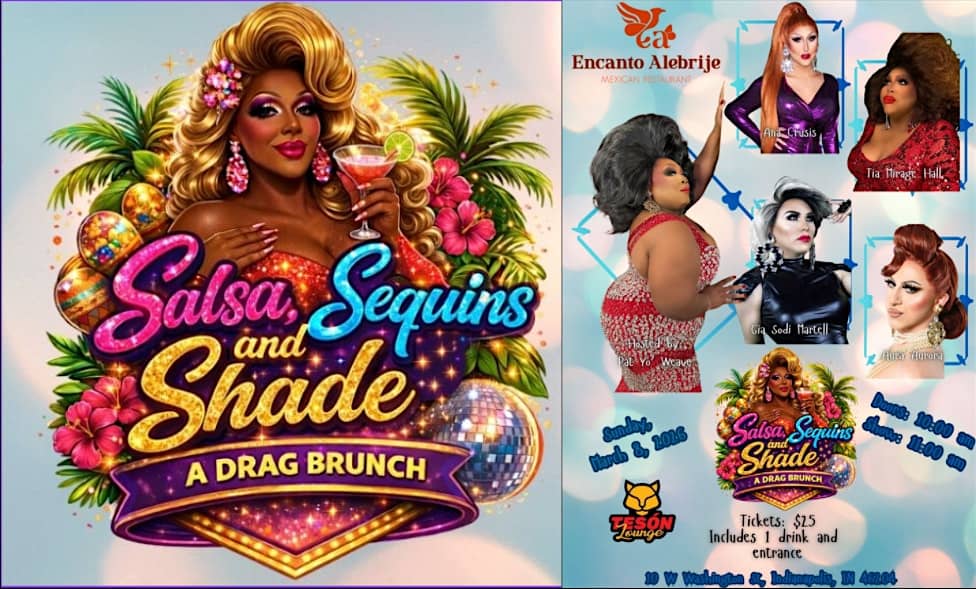 by admin23Feb Salsa Sequins and Shade – A Drag Brunch at Encanto Alebrije Mexican Restaurant – Indianapolis, IN Salsa Sequins and Shade – A Drag Brunch at Encanto Alebrije Mexican Restaurant – Indianapolis, IN 2 2 people viewed this event. Get ready to sashay, sip mimosas, and serve fierce looks at Salsa Sequins and Shade! Tickets-RSVP Link Date And Time Sunday, March 8th, 2026 @ 10:00 AM Location 10 West Washington Street, Indianapolis, IN 46204 Event Types Party or Social GatheringPerforming & Visual Arts Event Category IndianaIndianapolis Share With Friends Facebook Twitter Linkedin Xing Pinterest Share This Post: