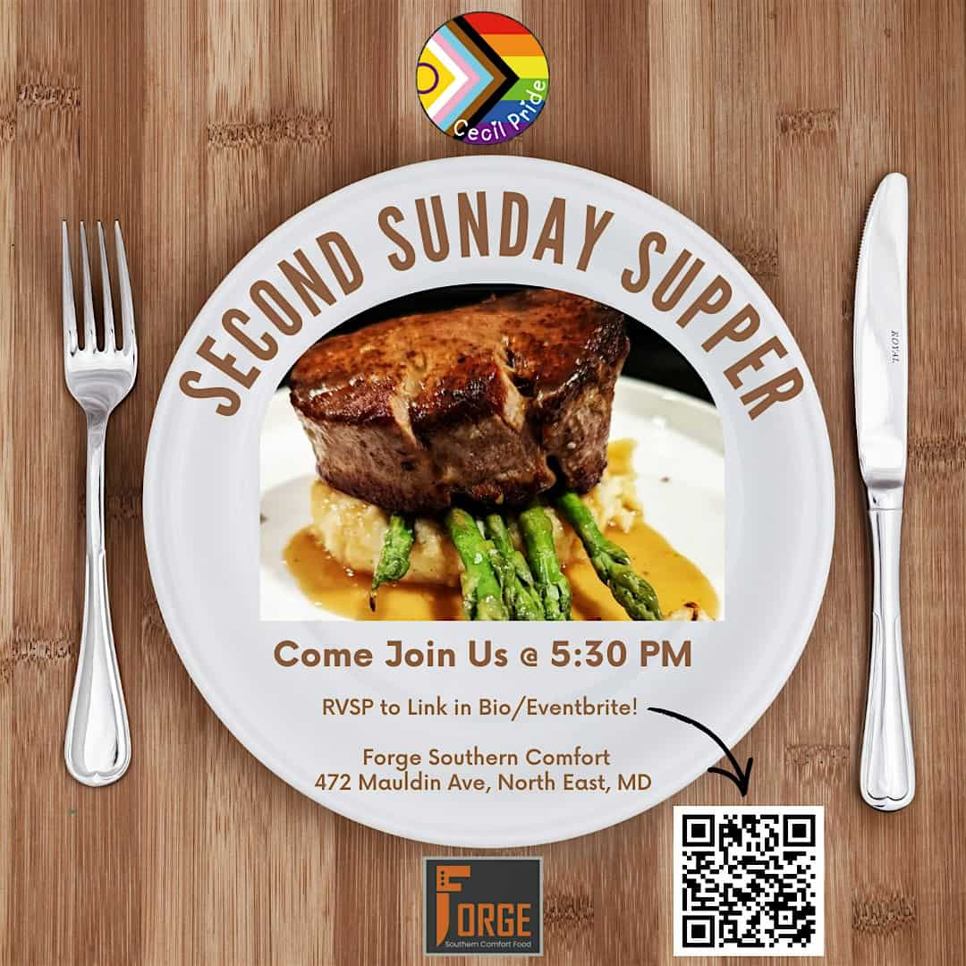 by admin14Feb Second Sunday Supper! at Forge Southern Comfort – North East, MD Second Sunday Supper! at Forge Southern Comfort – North East, MD 1 1 people viewed this event. Join us on Sunday, March 8 at 5:30 PM for Second Sunday Supper at Forge Southern Comfort! Tickets-RSVP Link Date And Time Sunday, March 8th, 2026 09:00 PM (PST) Venue Forge Southern Comfort Location 472 Mauldin Avenue, North East, MD 21901 Event Types Community & CultureParty or Social Gathering Event Category Maryland Share With Friends Facebook Twitter Linkedin Xing Pinterest Share This Post: