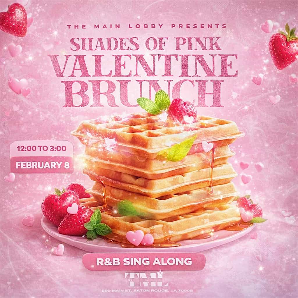 by admin23Feb Shades of Pink Gaentines Brunch at The Main Lobby at The Main Lobby – Baton Rouge, LA Shades of Pink Gaentines Brunch at The Main Lobby at The Main Lobby – Baton Rouge, LA 4 4 people viewed this event. Celebrate love in every shade of pink with a chic Valentine’s brunch featuring delicious bites, bottomless mimosas , and sing along fun! Tickets-RSVP Link Date And Time Sunday, March 8th, 2026 @ 12:00 PM Location 668 Main Street, Baton Rouge, LA 70801 Event Types Food & DrinkParty or Social Gathering Event Category Baton RougeLouisiana Share With Friends Facebook Twitter Linkedin Xing Pinterest Share This Post: