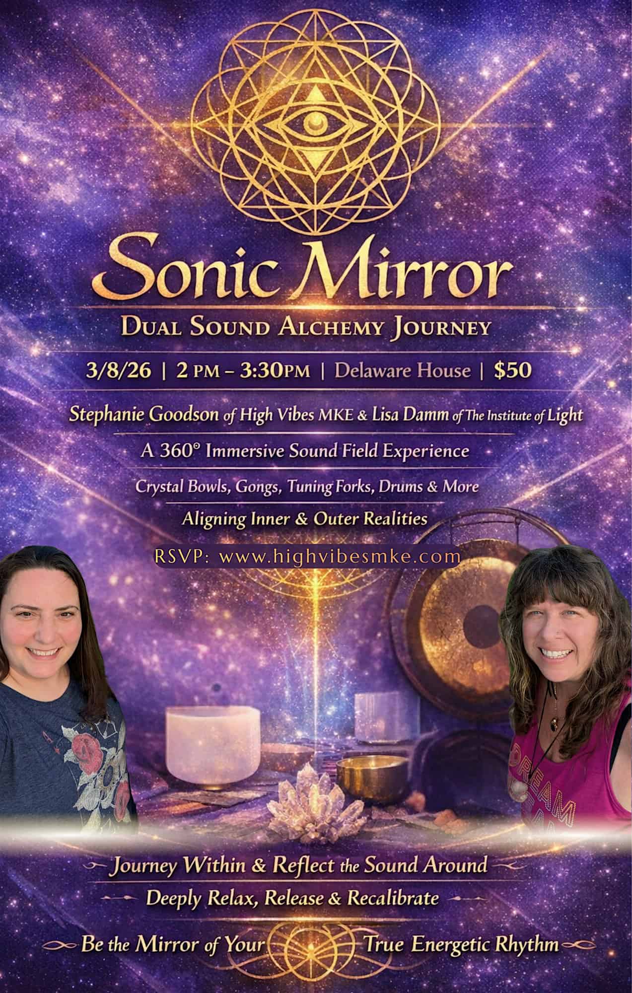 by admin14Feb Sonic Mirror – Dual Sound Alchemy Journey at Delaware House – Milwaukee, WI Sonic Mirror – Dual Sound Alchemy Journey at Delaware House – Milwaukee, WI 3 3 people viewed this event. Stephanie Goodson of High Vibes MKE and Lisa Damm of The Institute of Light come together in a powerful collaboration of dual sound alchemy. Tickets-RSVP Link Date And Time Sunday, March 8th, 2026 07:00 PM (PST) Venue Delaware House Location 2499 South Delaware Avenue, Milwaukee, WI 53207 Event Types Concert or Performance Event Category MilwaukeeWisconsin Share With Friends Facebook Twitter Linkedin Xing Pinterest Share This Post:
