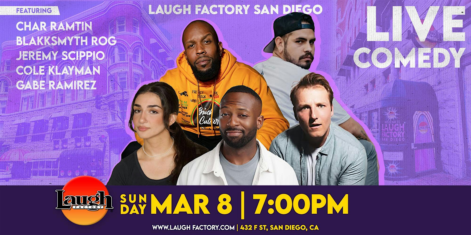 by admin05Mar #SUNDAY 7:00 PM at Laugh Factory – San Diego, CA #SUNDAY 7:00 PM at Laugh Factory – San Diego, CA 2 2 people viewed this event. The best way to ease into another week is with a Sunday night of comedy! Tickets-RSVP Link Date And Time Sunday, March 8th, 2026 07:00 PM (PST) Venue Laugh Factory Location 432 F street, San Diego, CA 92101 Event Types Concert or PerformanceFilm, Media & Entertainment Event Category CaliforniaSan Diego Share With Friends Facebook Twitter Linkedin Xing Pinterest Share This Post: