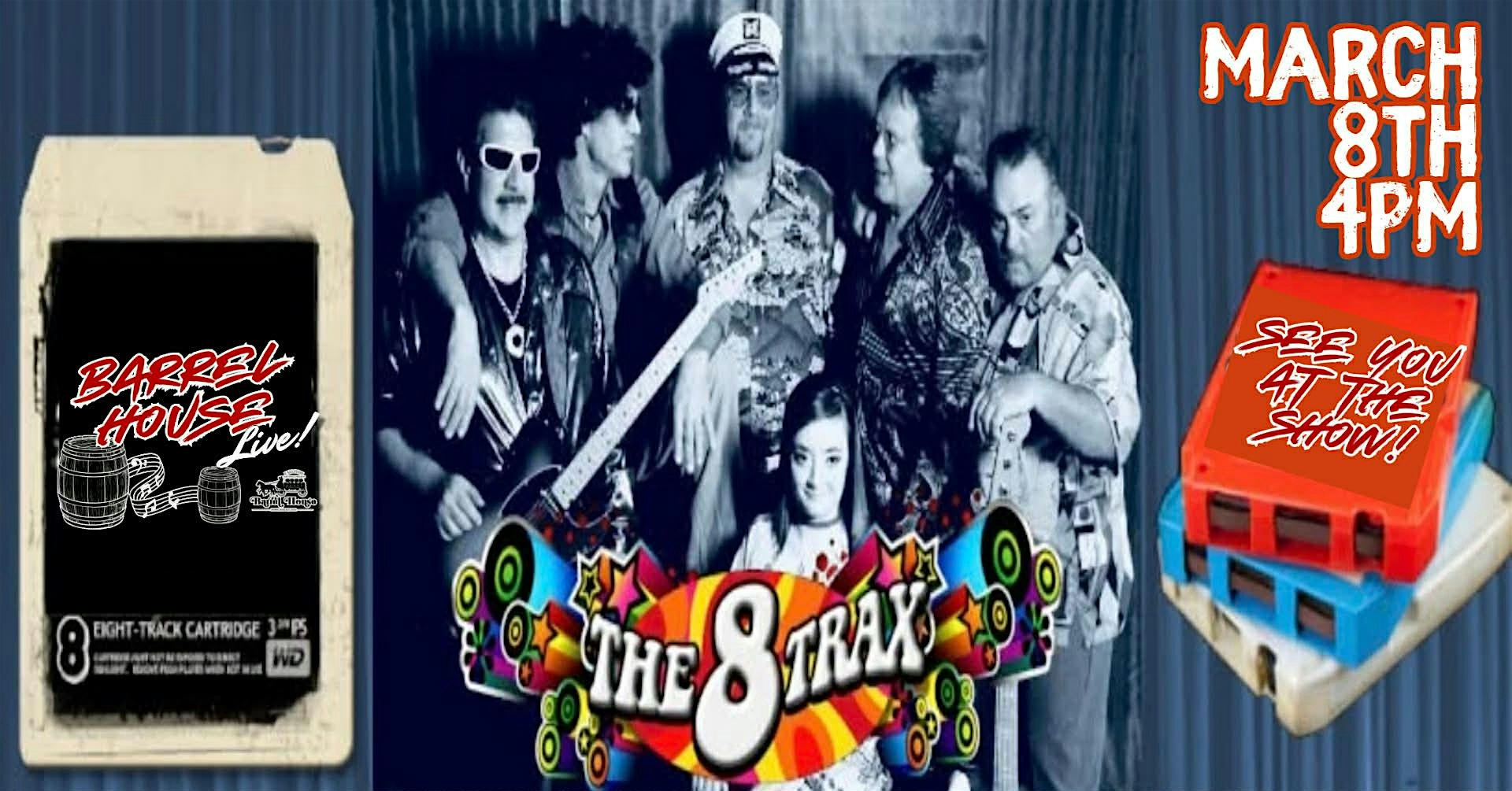 by admin13Feb The 8-Trax at Barrel House Live! at Barrel House Live – Fallston, MD The 8-Trax at Barrel House Live! at Barrel House Live – Fallston, MD 1 1 people viewed this event. The 8‑Trax – The East Coast’s Premier ’70s Revival Band LIVE at Barrel House Live in the Concert Hall! Tickets-RSVP Link Date And Time Sunday, March 8th, 2026 08:00 PM (PST) Venue Barrel House Live Location 2403 Belair Road, Fallston, MD 21047 Event Types Concert or PerformanceMusic Event Category Maryland Share With Friends Facebook Twitter Linkedin Xing Pinterest Share This Post: