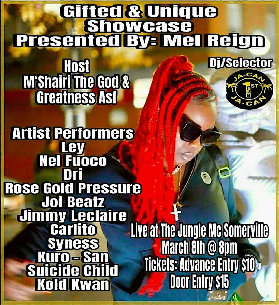 by admin23Feb The Gifted & Unique Showcase at The Jungle – Somerville, MA The Gifted & Unique Showcase at The Jungle – Somerville, MA 2 2 people viewed this event. Live Music at The Jungle Tickets-RSVP Link Date And Time Sunday, March 8th, 2026 09:00 PM (PST) Venue The Jungle Location 6 Sanborn Court, Somerville, MA 2143 Event Types Concert or PerformanceMusic Event Category Massachusetts Share With Friends Facebook Twitter Linkedin Xing Pinterest Share This Post:
