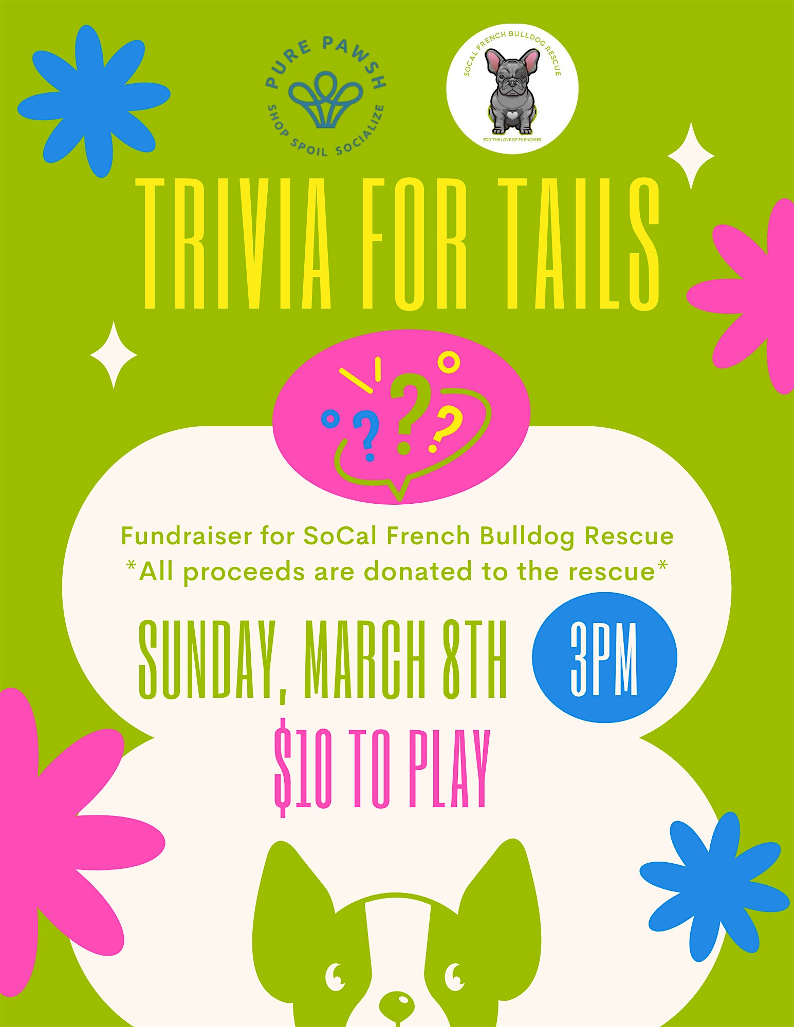 by admin05Mar Trivia for Tails: Fundraiser with Socal French Bulldog Rescue at Pure Pawsh – San Diego, CA Trivia for Tails: Fundraiser with Socal French Bulldog Rescue at Pure Pawsh – San Diego, CA 2 2 people viewed this event. Join us for a fun trivia night to help some adorable Frenchies find their forever homes! Tickets-RSVP Link Date And Time Sunday, March 8th, 2026 03:00 PM (PST) Venue Pure Pawsh Location 4045 30th Street, San Diego, CA 92104 Event Types Charity & CausesParty or Social Gathering Event Category CaliforniaSan Diego Share With Friends Facebook Twitter Linkedin Xing Pinterest Share This Post: