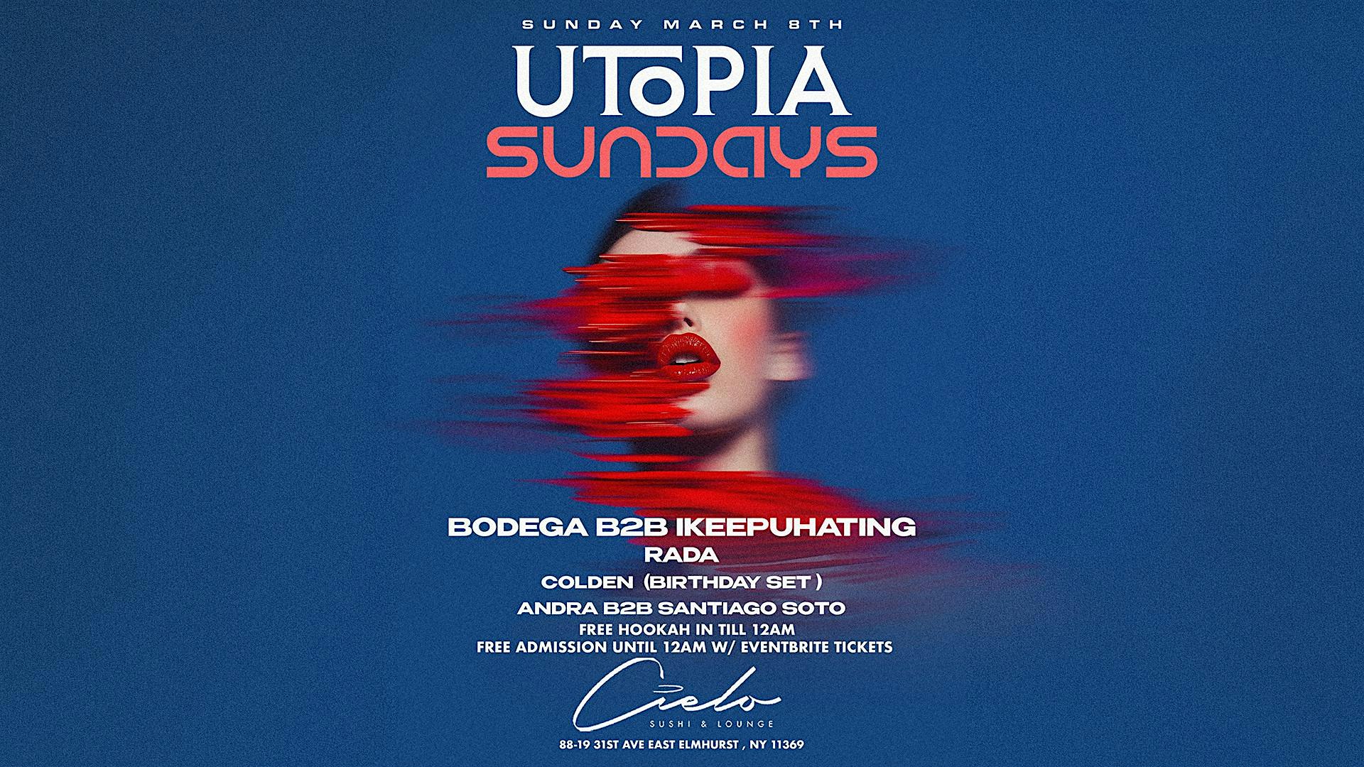 by admin05Mar UTOPIA SUNDAYS @ CIELO at CIELO Sushi Lounge – Queens, NY UTOPIA SUNDAYS @ CIELO at CIELO Sushi Lounge – Queens, NY 1 1 people viewed this event. Join us for an unforgettable night of house music, curated by NYC’s best DJs – Good vibes, strong drinks, and memories you’ll never forget Tickets-RSVP Link Date And Time Sunday, March 8th, 2026 10:00 PM (PST) Venue CIELO Sushi Lounge Location 8819 31st Avenue, Queens, NY 11369 Event Types MusicParty or Social Gathering Event Category New YorkNew York City Share With Friends Facebook Twitter Linkedin Xing Pinterest Share This Post: