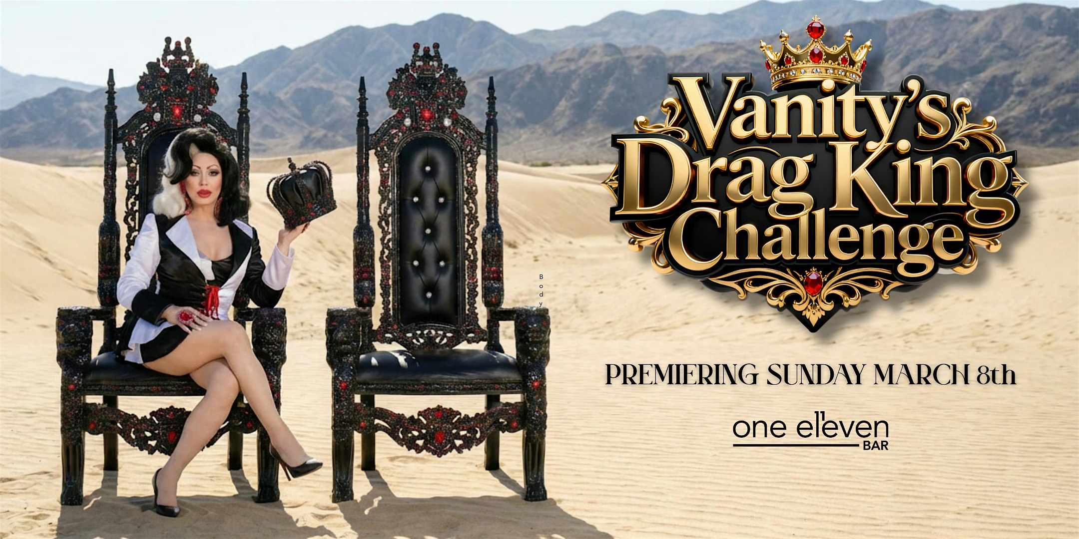by admin05Mar Vanity’s Drag KING Challenge at one eleven bar – Cathedral City, CA Vanity’s Drag KING Challenge at one eleven bar – Cathedral City, CA 1 1 people viewed this event. Palm Springs premier amateur drag competition with host Vanity Halston. 10 weeks, 10 challenges, $1,111 grand prize! Tickets-RSVP Link Date And Time Sunday, March 8th, 2026 08:00 PM (PST) Venue one eleven bar Location 67555 East Palm Canyon Drive, Cathedral City, CA 92234 Event Types Concert or PerformancePerforming & Visual Arts Event Category California Share With Friends Facebook Twitter Linkedin Xing Pinterest Share This Post: