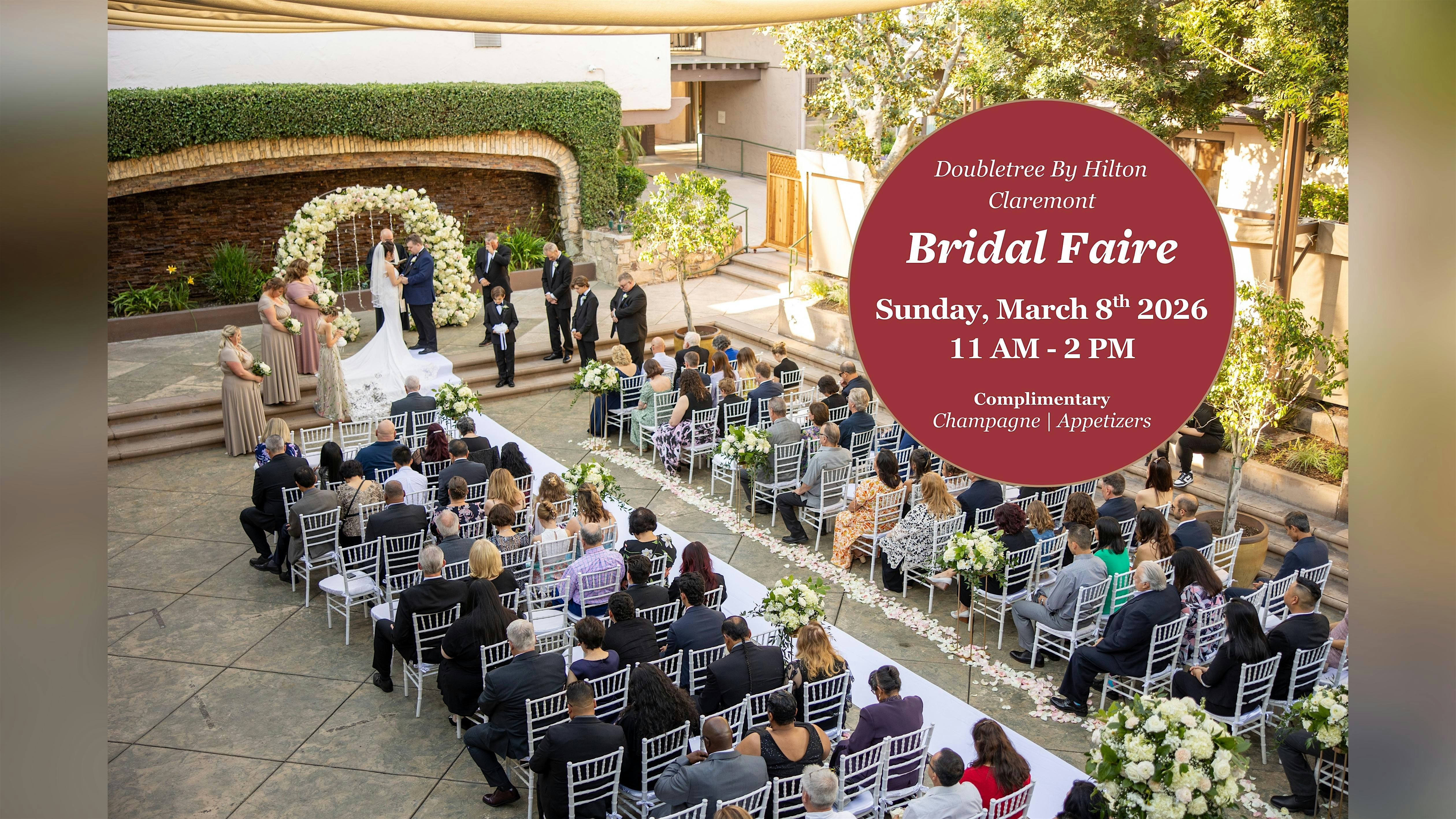 by admin23Feb Wedding Showcase at the Doubletree Claremont at DoubleTree by Hilton Hotel Claremont – Claremont, CA Wedding Showcase at the Doubletree Claremont at DoubleTree by Hilton Hotel Claremont – Claremont, CA 3 3 people viewed this event. Come check out the Doubletree Claremont Bridal Faire for all your wedding inspo and vendor specials! Complimentary Champagne & Appetizers! Tickets-RSVP Link Date And Time Sunday, March 8th, 2026 11:00 AM (PST) Venue DoubleTree by Hilton Hotel Claremont Location 555 West Foothill Boulevard, Claremont, CA 91711 Event Types Food & Drink Event Category California Share With Friends Facebook Twitter Linkedin Xing Pinterest Share This Post: