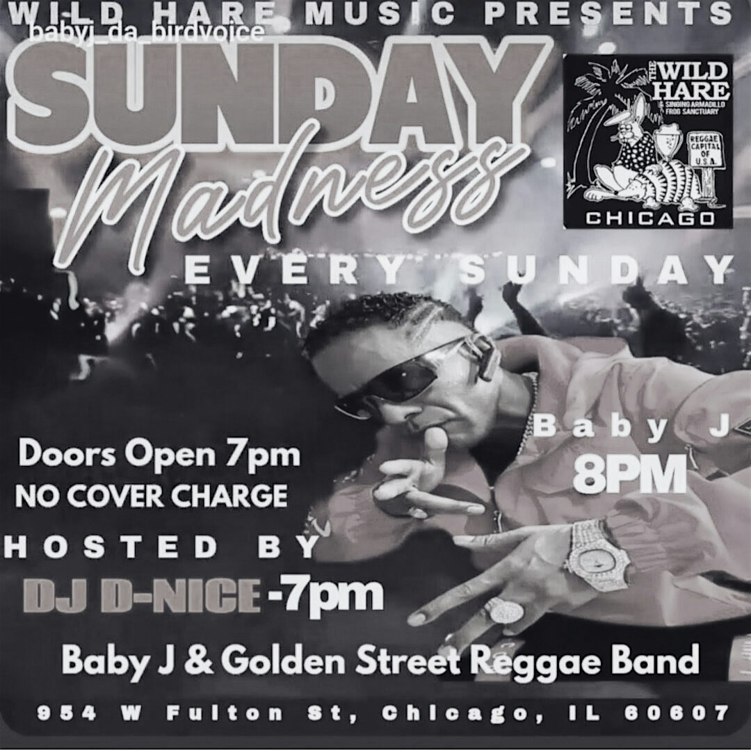 by admin27Feb Wild Hare Music Presents BABY J & GOLDEN STREET REGGAE BAND at The Wild Hare & Singing Armadillo Frog Sanctuary – Chicago, IL Wild Hare Music Presents BABY J & GOLDEN STREET REGGAE BAND at The Wild Hare & Singing Armadillo Frog Sanctuary – Chicago, IL 1 1 people viewed this event. Wild Hare Music presents a complimentary live set from Baby J & Golden Street Reggae Band! Tickets-RSVP Link Date And Time Sunday, March 8th, 2026 08:00 PM (PST) Venue The Wild Hare & Singing Armadillo Frog Sanctuary Location 950 West Fulton Street, Chicago, IL 60607 Event Types Concert or PerformanceMusic Event Category ChicagoIllinois Share With Friends Facebook Twitter Linkedin Xing Pinterest Share This Post: