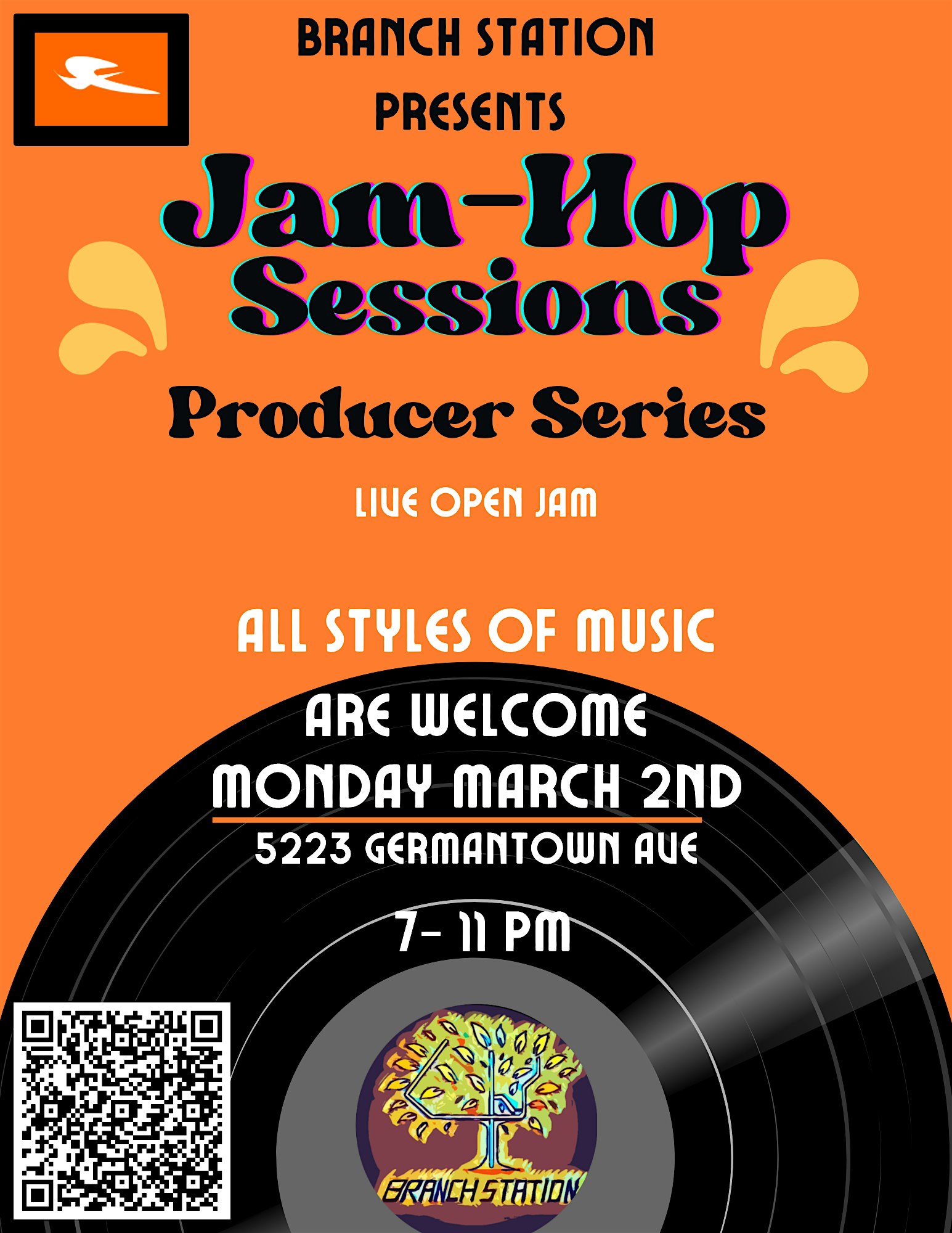 by admin05Mar Branch Station Presents: Jam-Hop Sessions ( Producer Series) at 5223 Germantown Ave – Philadelphia, PA Branch Station Presents: Jam-Hop Sessions ( Producer Series) at 5223 Germantown Ave – Philadelphia, PA 2 2 people viewed this event. Branch Station Presents: Jam-Hop Sessions. A live music open jam where anyone can play and everyone can jam. ALL MUSICANS WELCOMED !!!! Tickets-RSVP Link Date And Time Monday, March 9th, 2026 07:00 PM (PST) Venue 5223 Germantown Ave Location 5223 Germantown Avenue, Philadelphia, PA 19144 Event Types Concert or PerformanceMusic Event Category PennsylvaniaPhiladelphia Share With Friends Facebook Twitter Linkedin Xing Pinterest Share This Post: