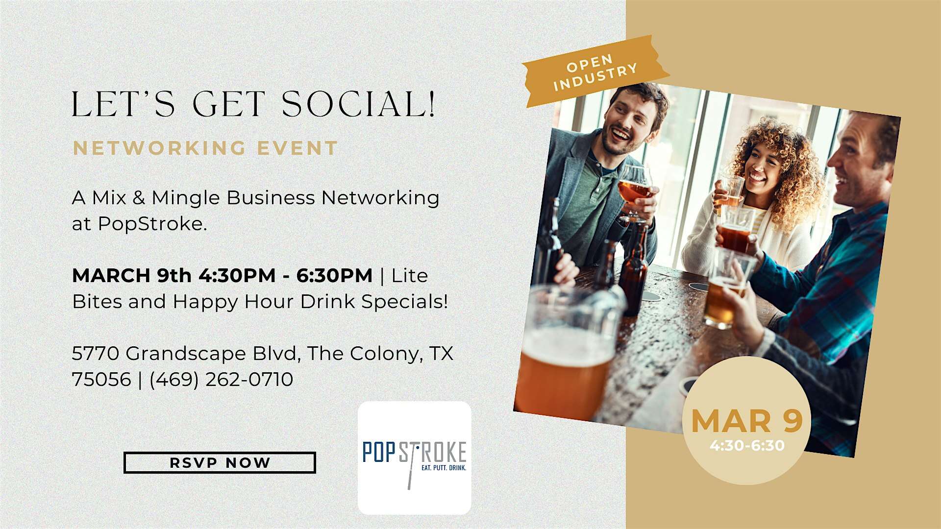 by admin14Feb Mix & Mingle at PopStroke at PopStroke – The Colony, TX Mix & Mingle at PopStroke at PopStroke – The Colony, TX 1 1 people viewed this event. Join us for Mix & Mingle at PopStroke—great vibes, tasty bites, and fun times mixing and mingling with business professionals. Tickets-RSVP Link Date And Time Monday, March 9th, 2026 09:00 PM (PST) Venue PopStroke Location 5770 Grandscape Boulevard, The Colony, TX 75056 Event Types Community & CultureParty or Social Gathering Event Category DallasTexas Share With Friends Facebook Twitter Linkedin Xing Pinterest Share This Post: