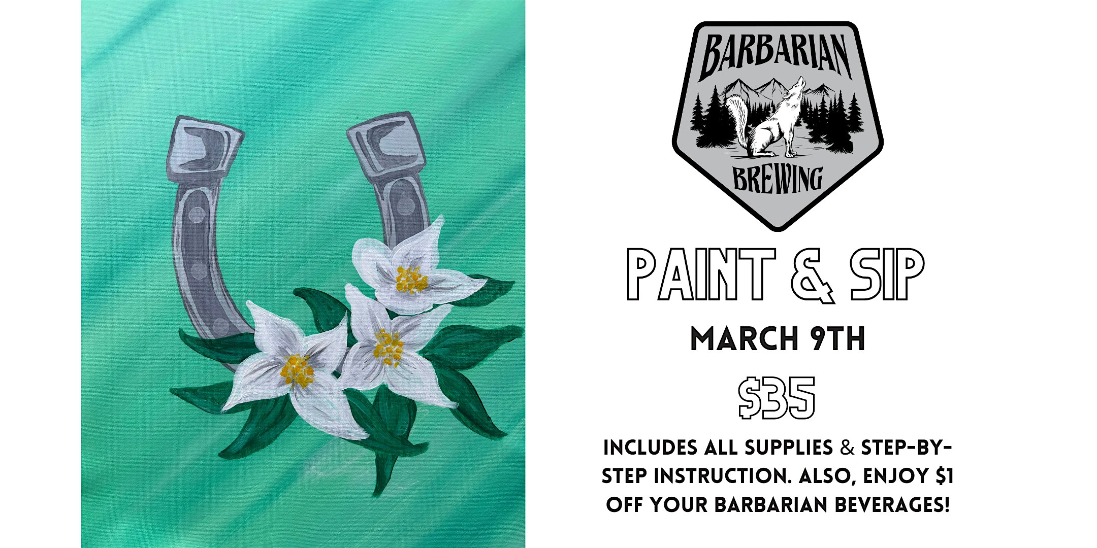 Explore your creative side in this laid back guided painting class while enjoying some delicious Brews at Barbarian GC.