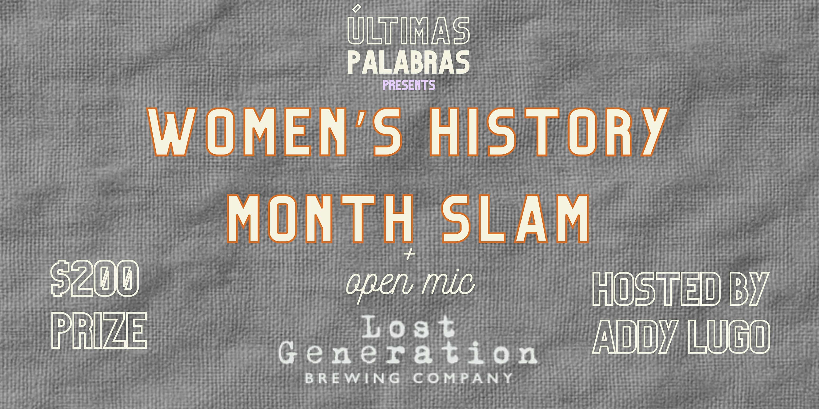 by admin14Feb Women’s History Month Poetry Slam at Lost Generation Brewing Company – Washington, DC Women’s History Month Poetry Slam at Lost Generation Brewing Company – Washington, DC 1 1 people viewed this event. Últimas Palabras presents the Women’s History Month Poetry Slam, a slam competition and open mic for women in DC Tickets-RSVP Link Date And Time Monday, March 9th, 2026 11:00 PM (PST) Venue Lost Generation Brewing Company Location 327 S Street Northeast, Washington, DC 20002 Event Types Concert or PerformancePerforming & Visual Arts Event Category Washington DC Share With Friends Facebook Twitter Linkedin Xing Pinterest Share This Post: