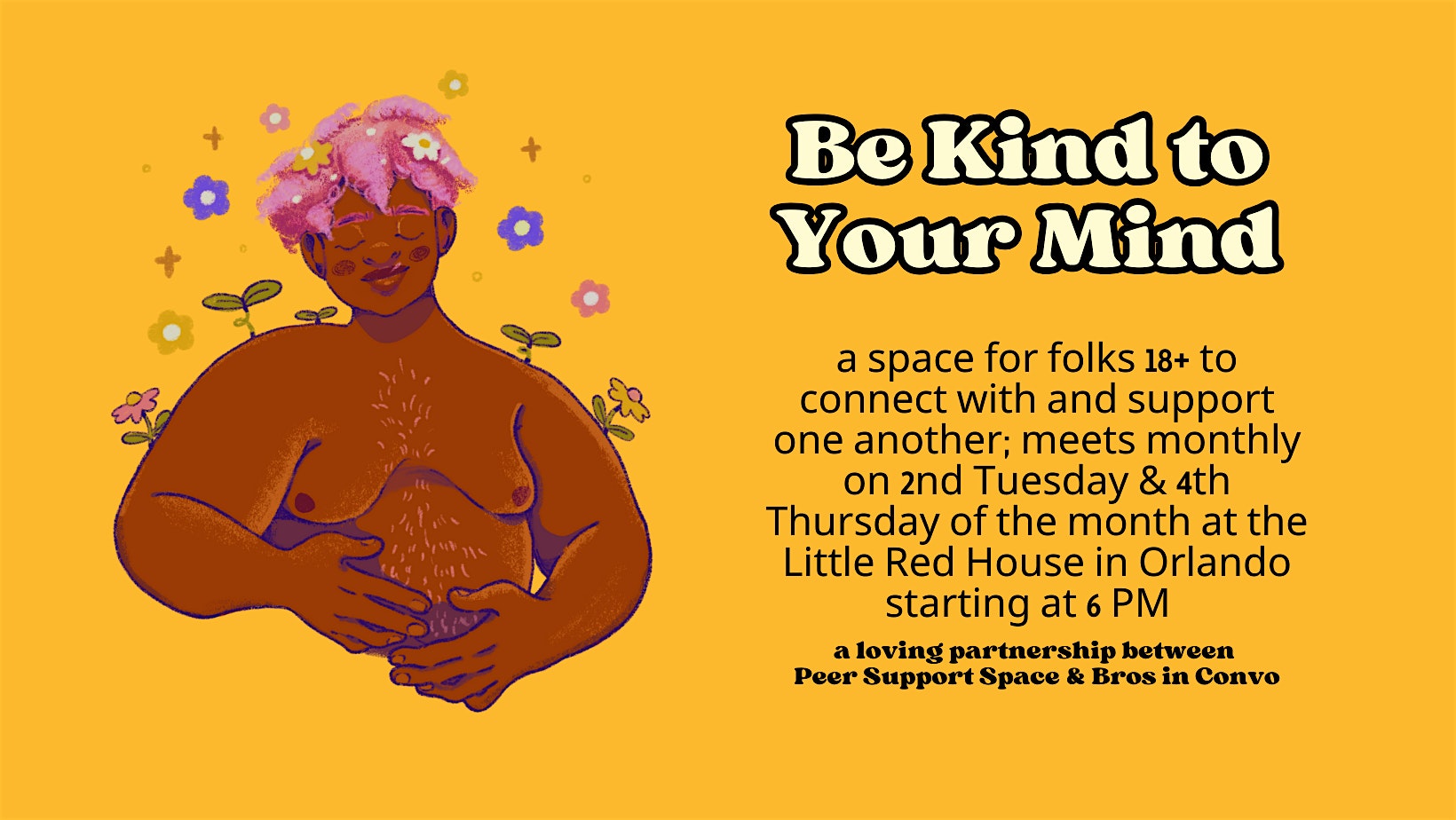 by admin23Feb Be Kind to Your Mind at Little Red House – Orlando, FL Be Kind to Your Mind at Little Red House – Orlando, FL 2 2 people viewed this event. Be Kind To Your Mind is a community gathering led by and for peers that want to support one another in a nonjudgmental environment. Tickets-RSVP Link Date And Time Tuesday, March 10th, 2026 06:00 PM (PST) Venue Little Red House Location 644 W. Princeton Street, Orlando, FL 32804 Event Types Party or Social Gathering Event Category FloridaOrlando Share With Friends Facebook Twitter Linkedin Xing Pinterest Share This Post: